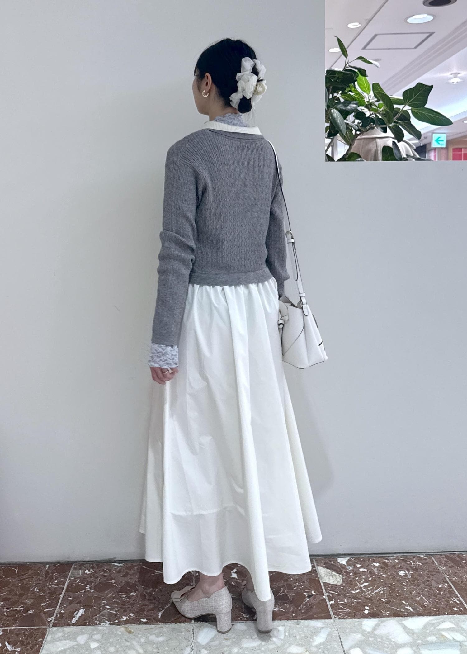 トップス部分は身体に程よくフィットする薄手のニット素材。スカート部分はふんわりとした立体的なシルエットです。