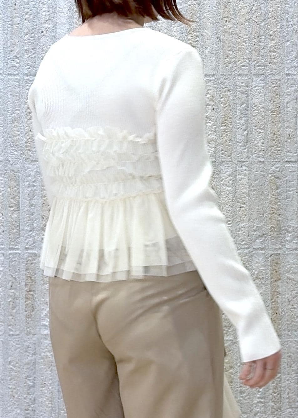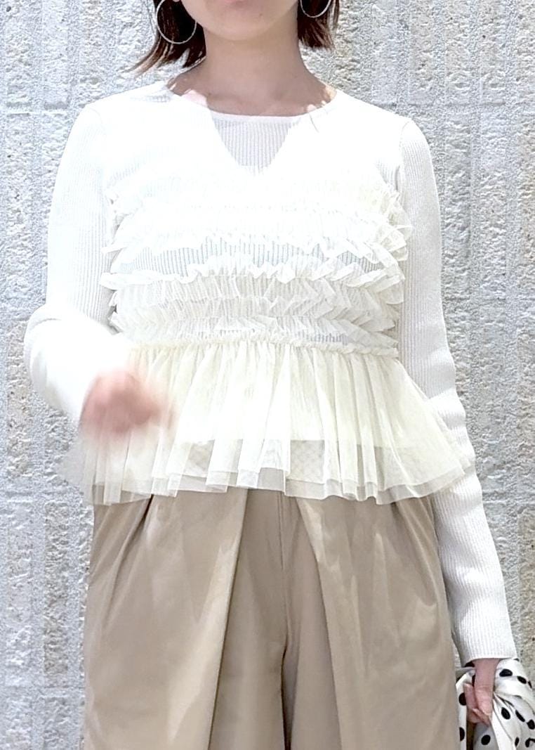 VISチュールドッキングニット/イージーケアオフホワイト / F¥6,589レビュー春に着たくなるチュール素材を