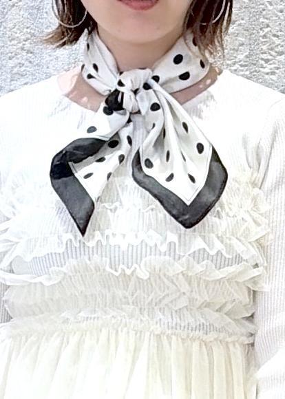 VISドット柄スカーフ 70×70cmホワイト系 / F¥2,189レビュードット柄が可愛く、コーデのポイントにも