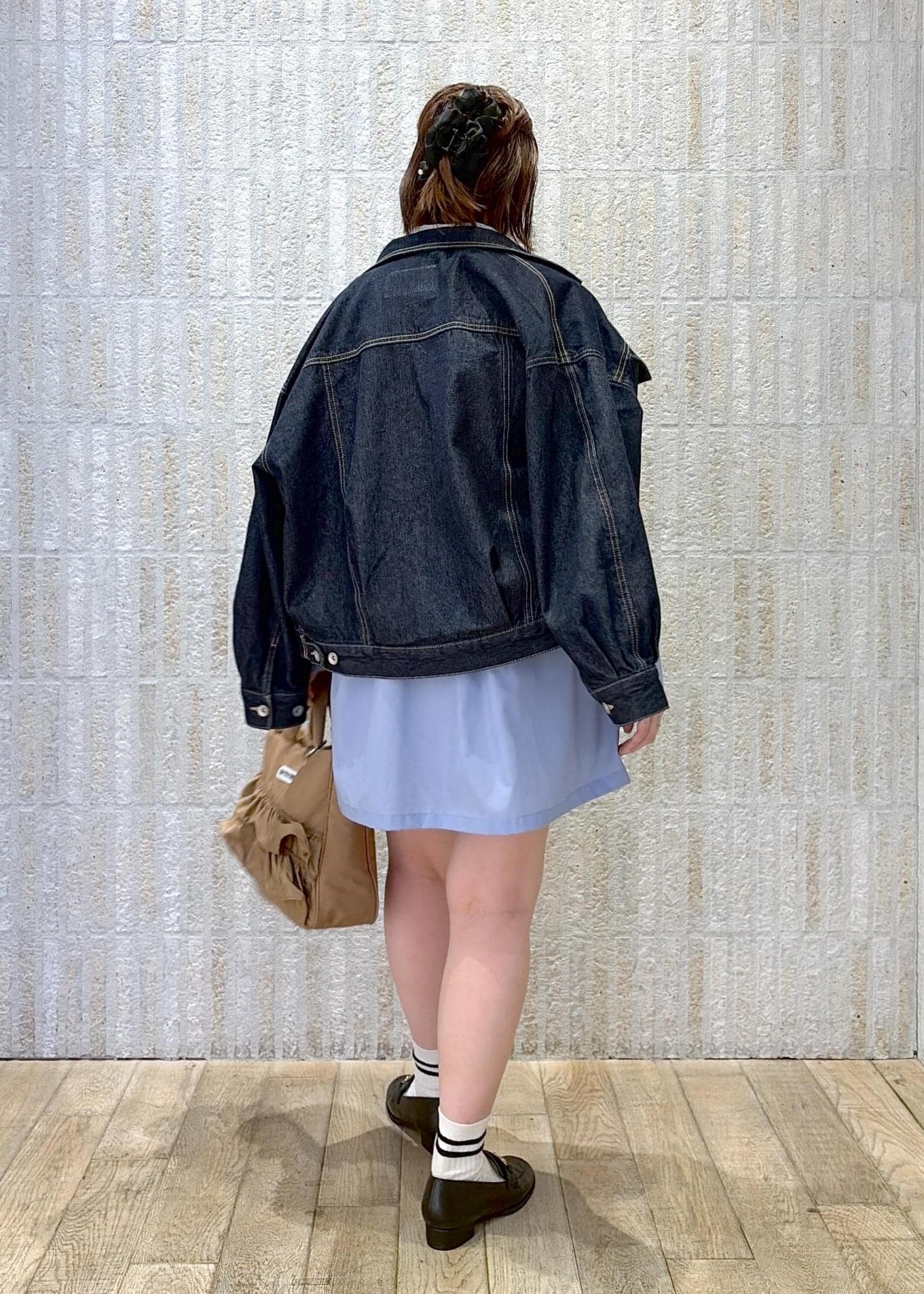 甘めでありつつ、デニムジャケットにすることで