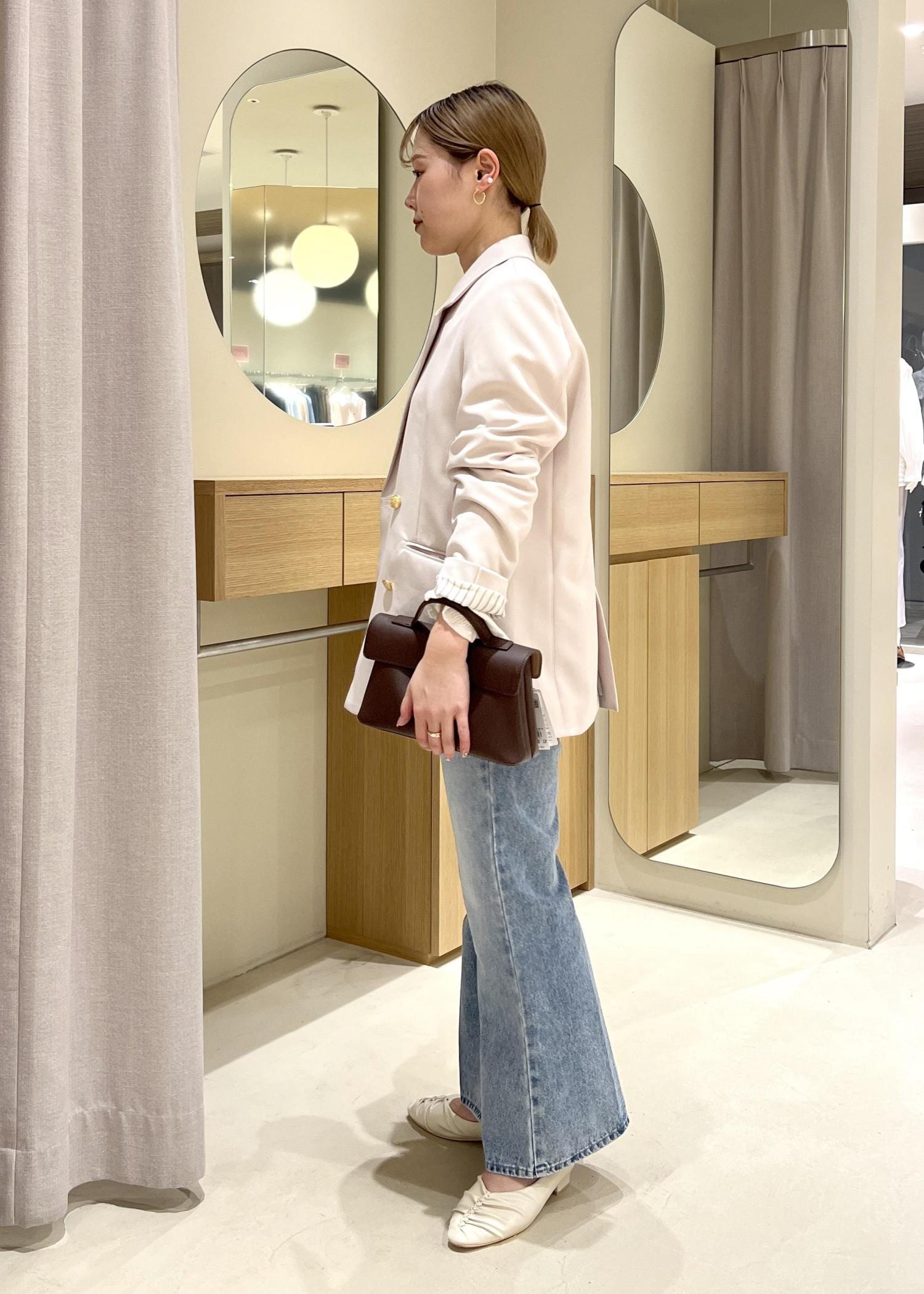 ダークブラウンのバッグを差し色に、コーデ引き締まるよう意識してみました!