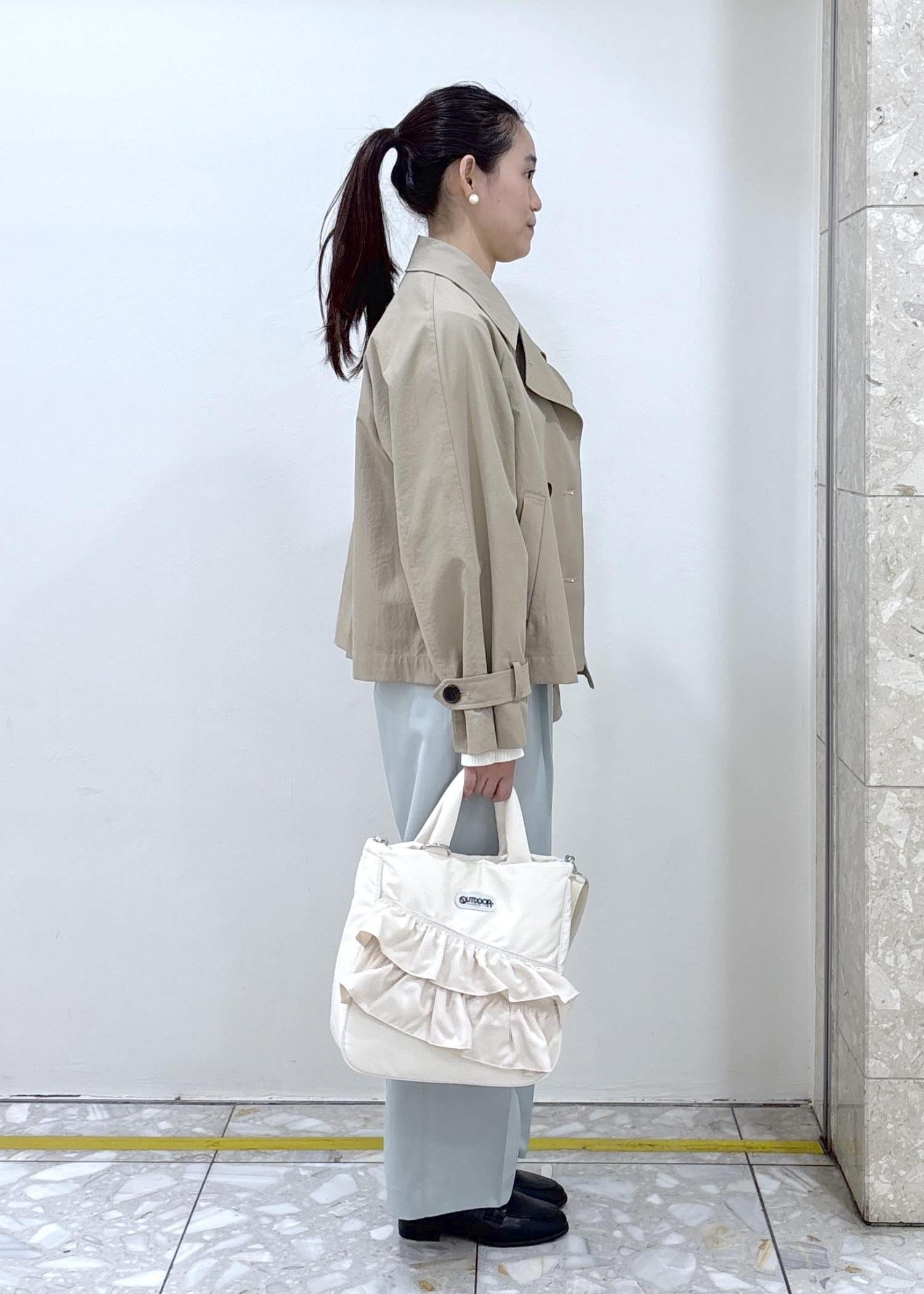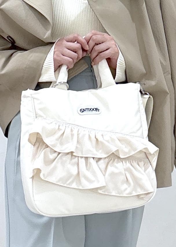 VIS【OUTDOOR PRODUCTS】VIS別注2WAYフリルトートバッグキナリ / F¥8,580レビューフロントのフリル部分がポイントで、シンプルな洋服合わせにピッタリなバッグです。