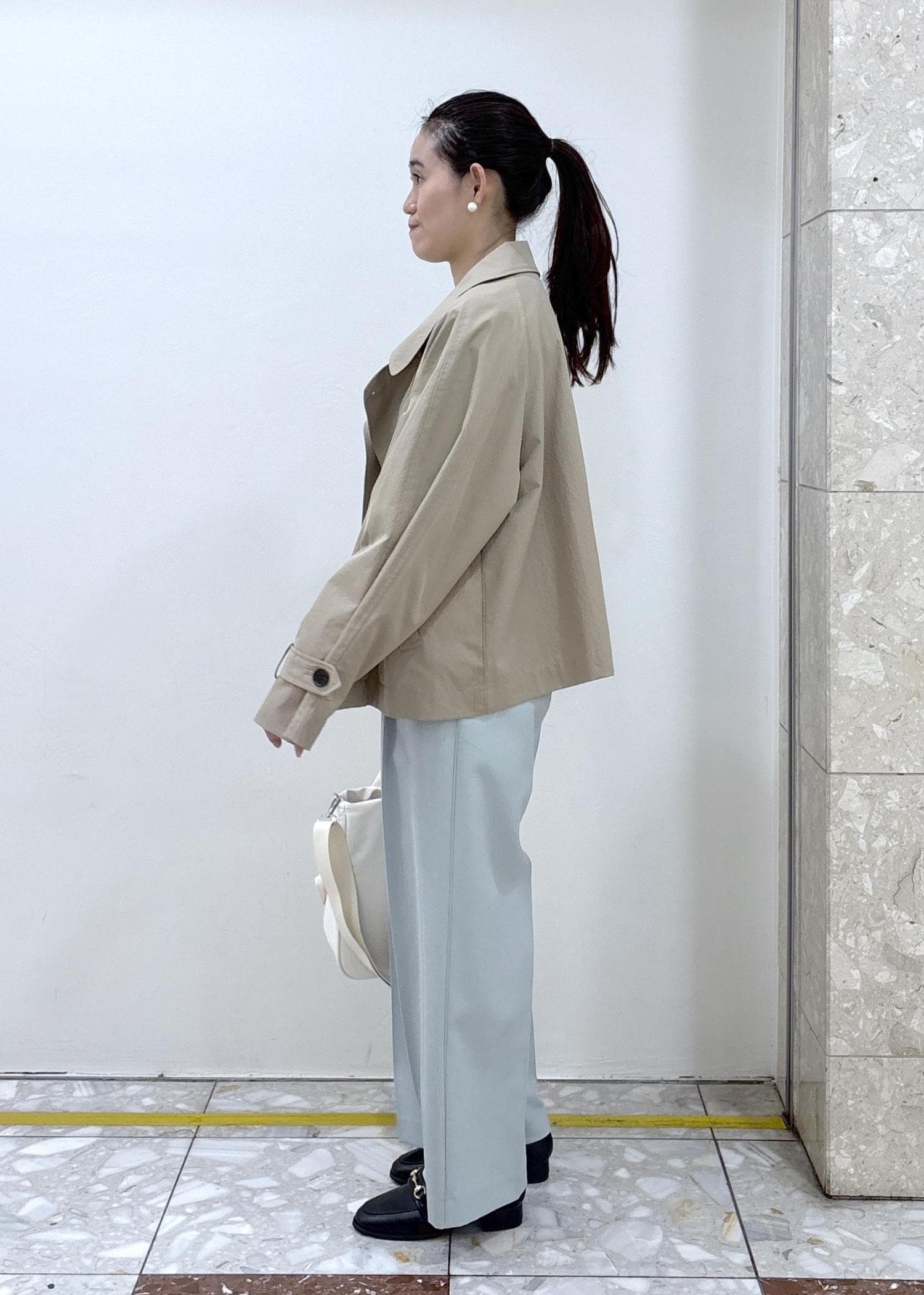 予約VISショートトレンチコート/UVケア・撥水・花粉ガードベージュ系 / F¥13,090レビューショート丈なので、ハイウエストのボトムスやロング丈のボトムスとの相性が抜群です◎
