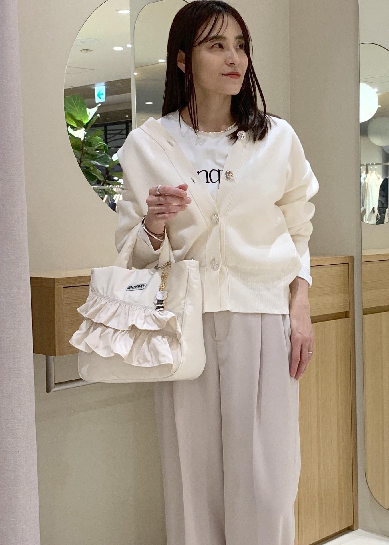 OUTDOORはスポーティなイメージですが、フリルデザインが少し甘さを出してくれて、カジュアルな装いじゃないスタイルにも使いやすいですよ。 -