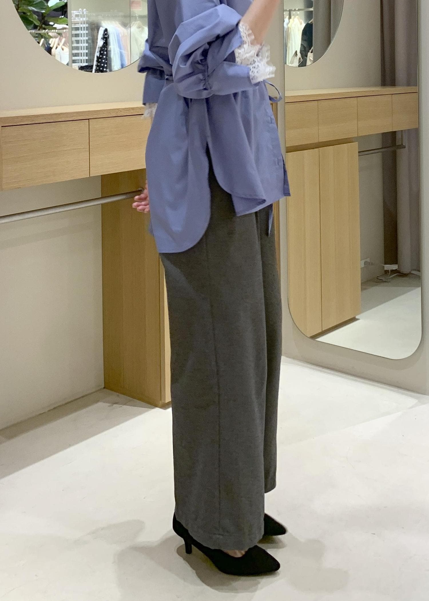 起毛ウールライク版ベルトディテールタックワイドパンツ