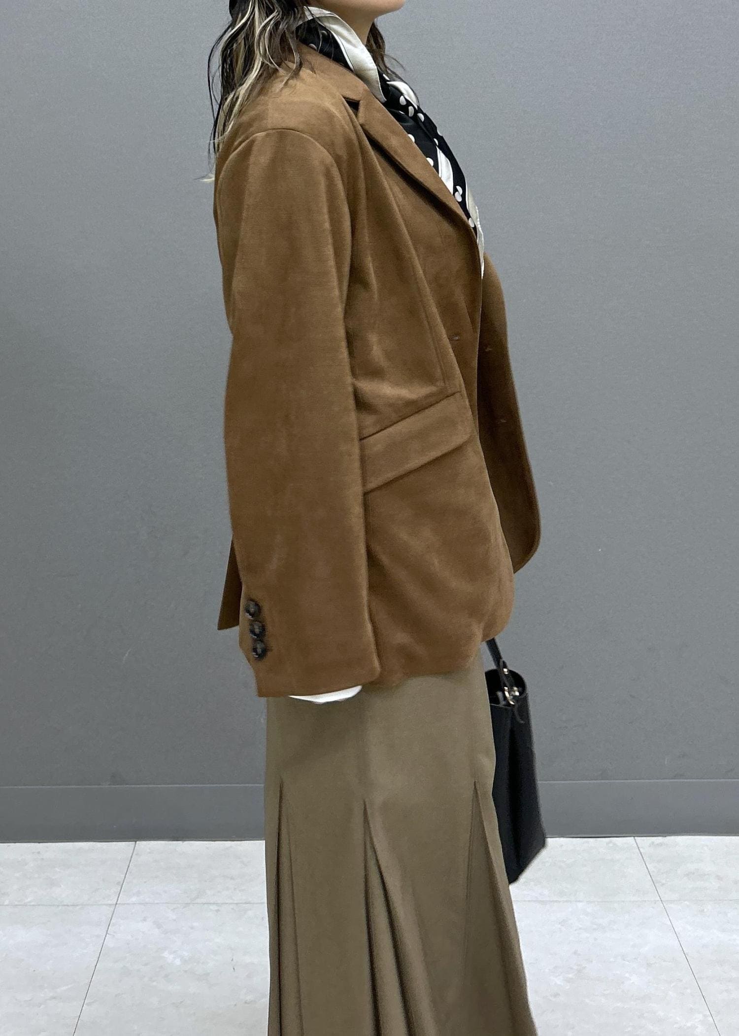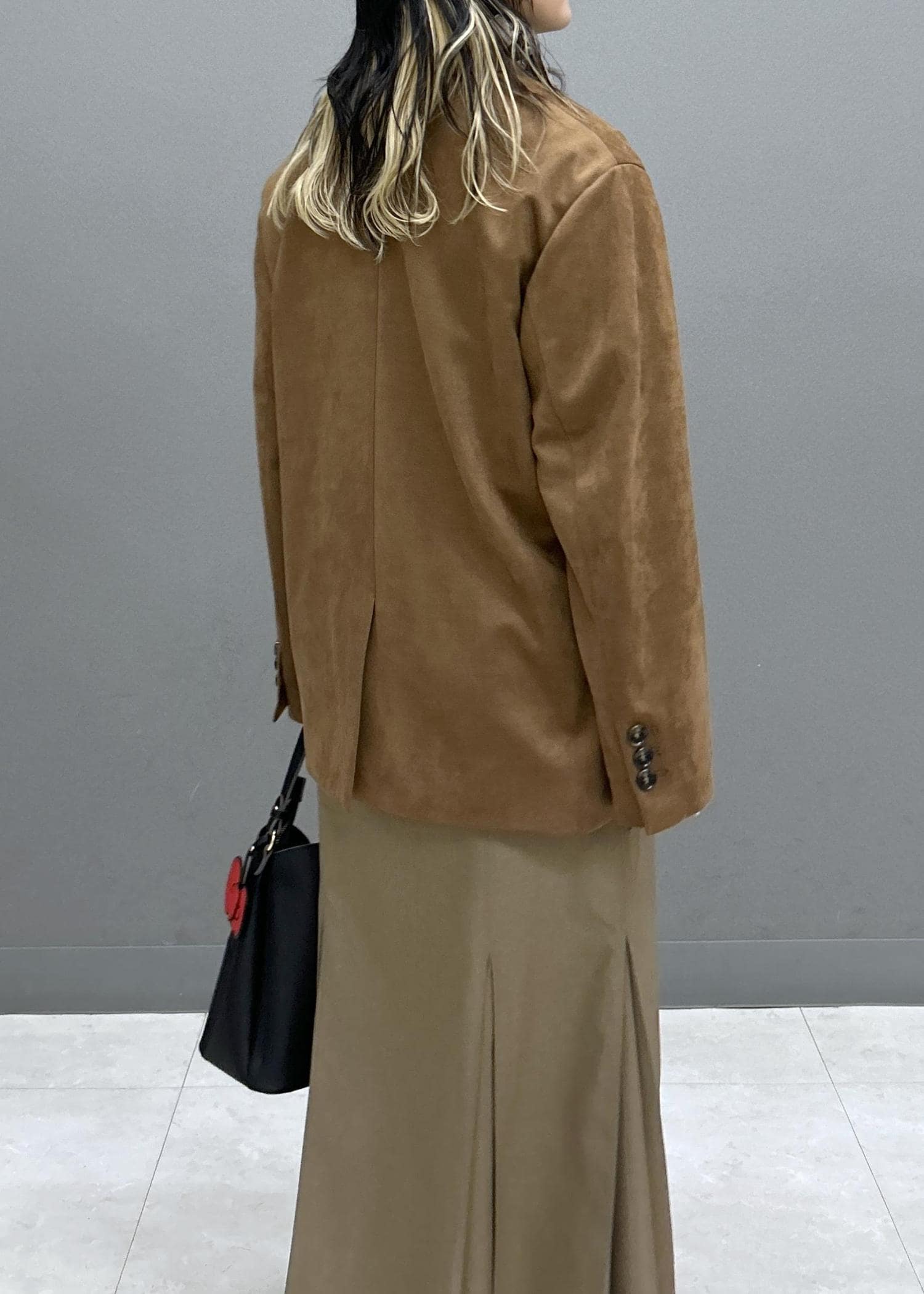 ジャケットはオーバーサイズなので、マーメイドスカートで気になる腰回りもカバーしてくれます☺︎
