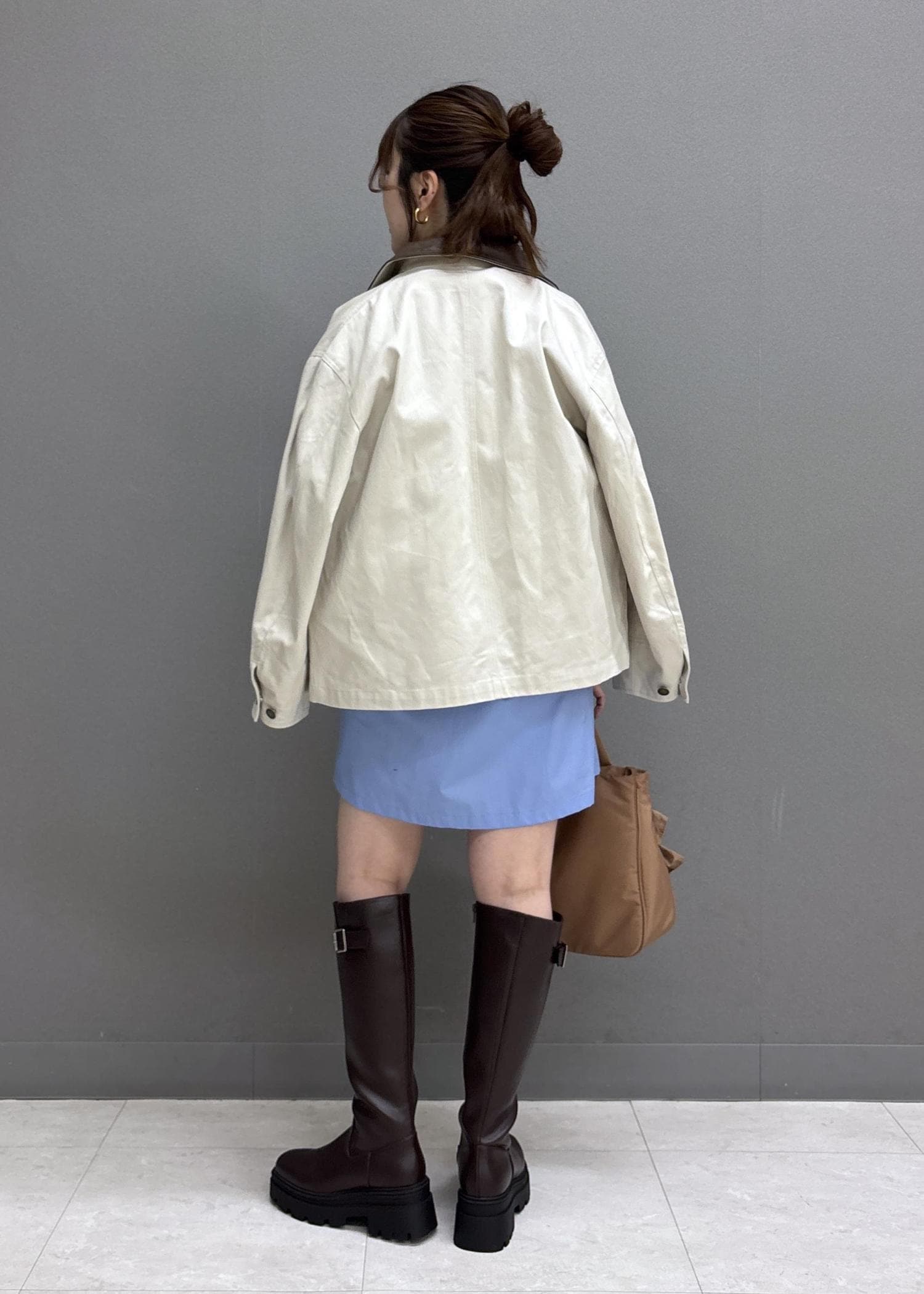 VISバイカラー衿カバーオールベージュ / F¥9,999レビュー160㎝だとヒップまわりまで隠れる着丈。ゆったりシルエットなので、中にスウェットなども着られます!ややハリ感のある素材で、さらっと羽織りやすい軽さです!カジュアルすぎないデザインで、きれいめコーデにもおすすめ◎