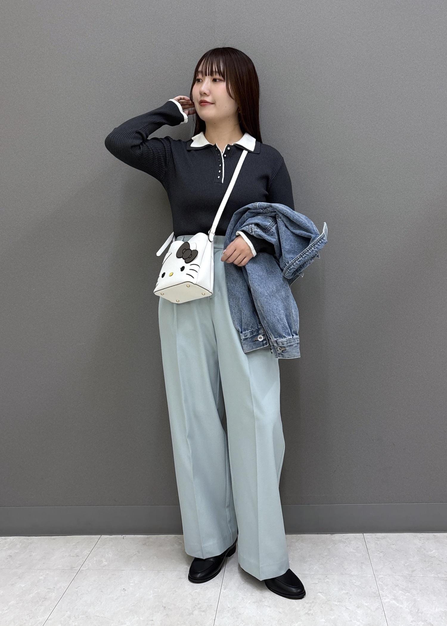 VISダブルカラーポロニットトップスチャコール / F¥5,489レビュー160㎝だとヒップにかかる長さ。ややフィット感はありますが、伸縮性がある柔らかい薄手の素材なので、とにかく着心地が抜群◎襟元や袖のバイカラーデザインが、着映えすること間違いなし♩