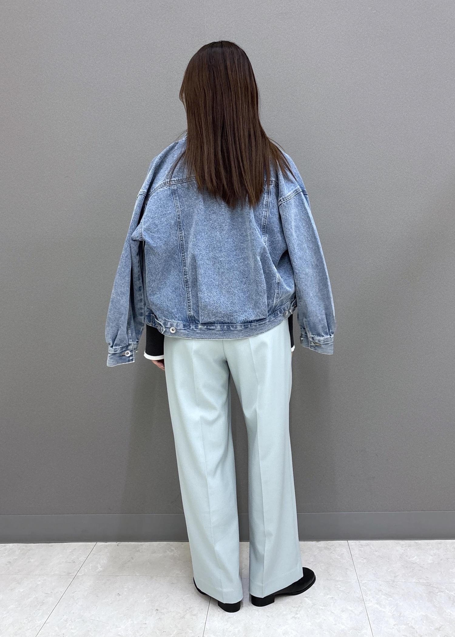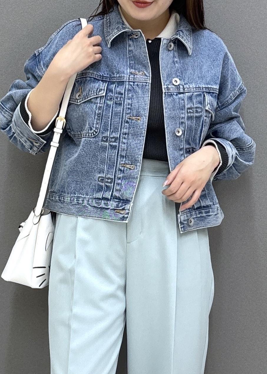 VISボリュームスリーブデニムジャケットサックス / F¥9,999レビュー定番のデニムジャケット♩160㎝だと腰まわりは隠れる長さで、ボトムスを選ばず合わせられます!程よくハリ感がある素材ですが、着膨れはせずに着用できました!身幅や腕まわりはゆったりしているので、厚手のトップスも着られます!