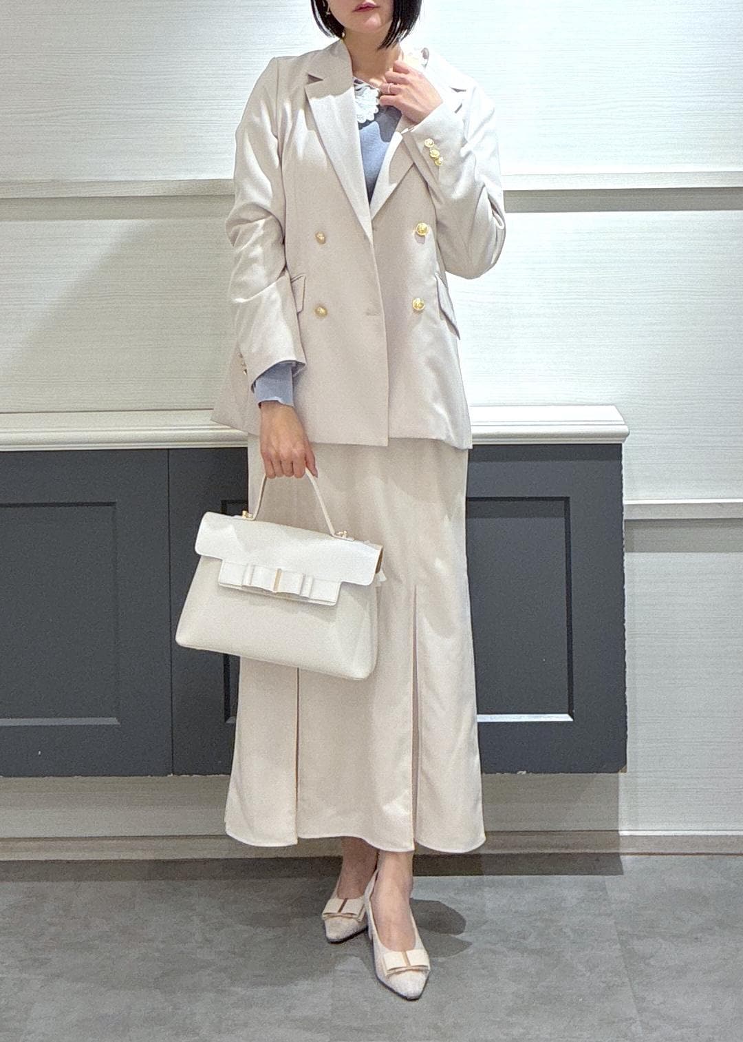 ジャケットとスカートは実はセットアップアイテムはないのですが、似たカラーなのでセットアップ風に着用出来ました♡