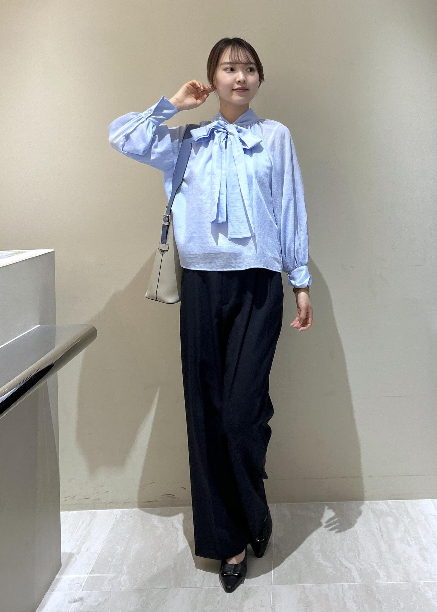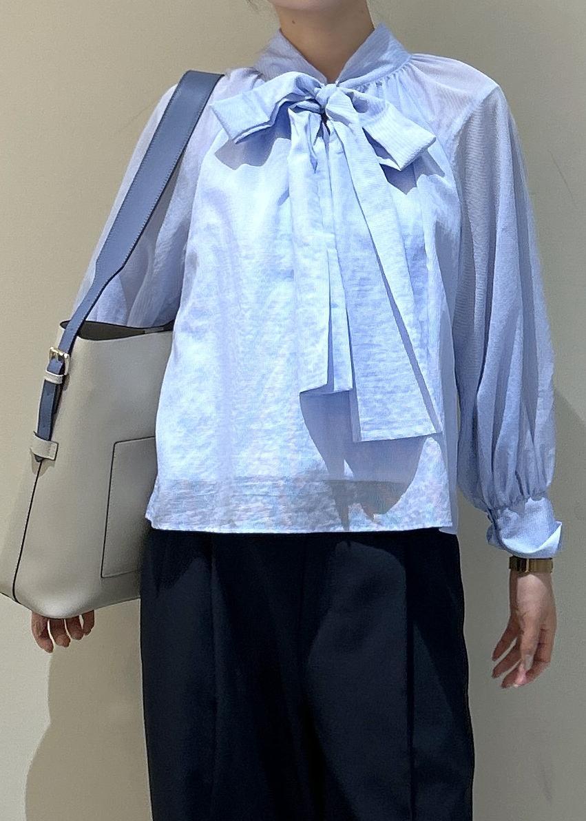 VIS前後2WAYボリュームボウタイブラウス/イージーケアサックス / F¥5,929レビューコーデに華やかさがプラスされるボウタイブラウス!