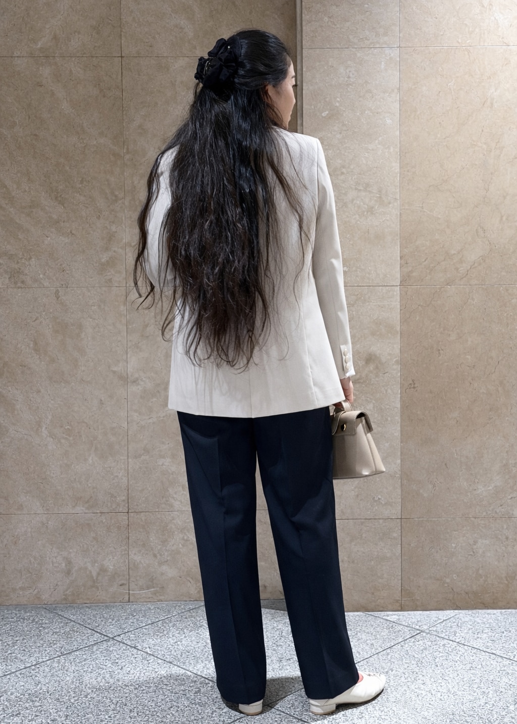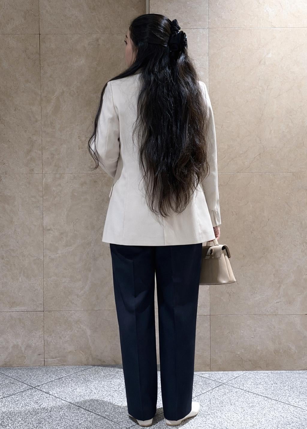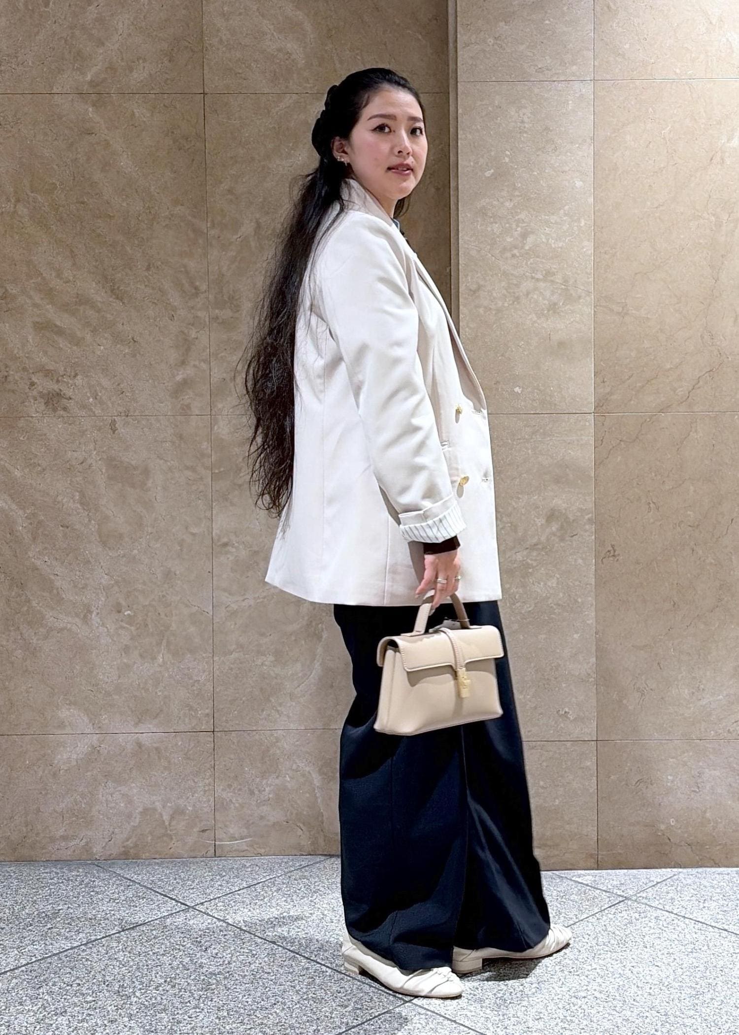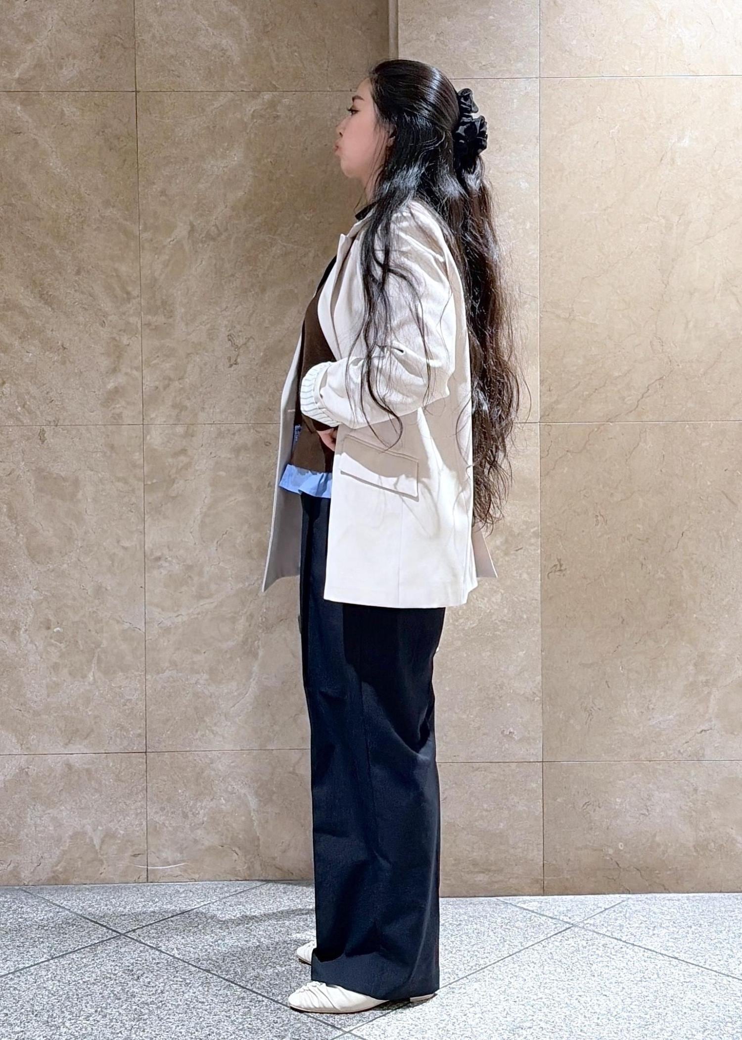 シャツが短すぎず長すぎないので、お上品でスーツスタイルにも普段使いにもピッタリ◎