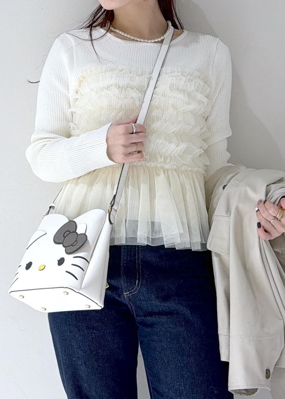 VIS【HELLO KITTY×VIS】ダブルフェイスハートカットミニショルダーバッグオフホワイト / F¥7,909レビューコンパクトなショルダーバッグです◎