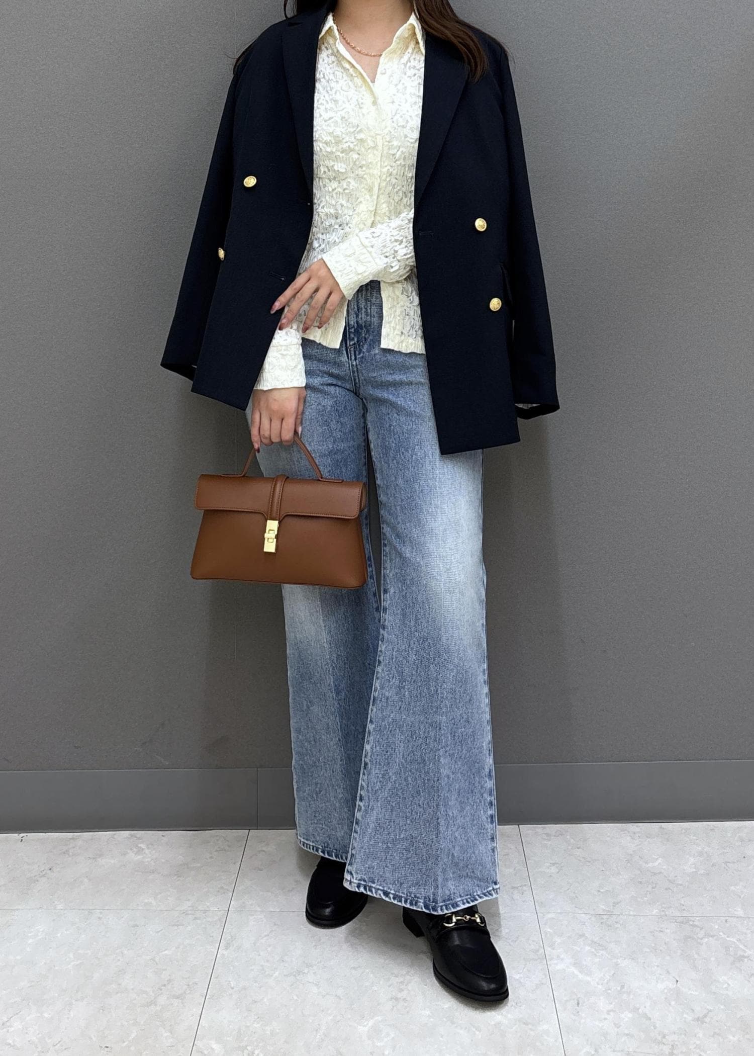 VIS【美easy】コンフォート金ボタンジャケット/イージーケア・UVケア・セットアップ対応ネイビー / M¥8,899レビュー160㎝ / Mサイズ着用。ヒップまで隠れる着丈で安心感があります!袖は手の甲にかかる長さだったので、折り返して着ても◎腕まわりがゆったりしているのでシャツはもちろん、薄手のニットも重ね着できました!さらっとした素材で軽い着心地です♩
