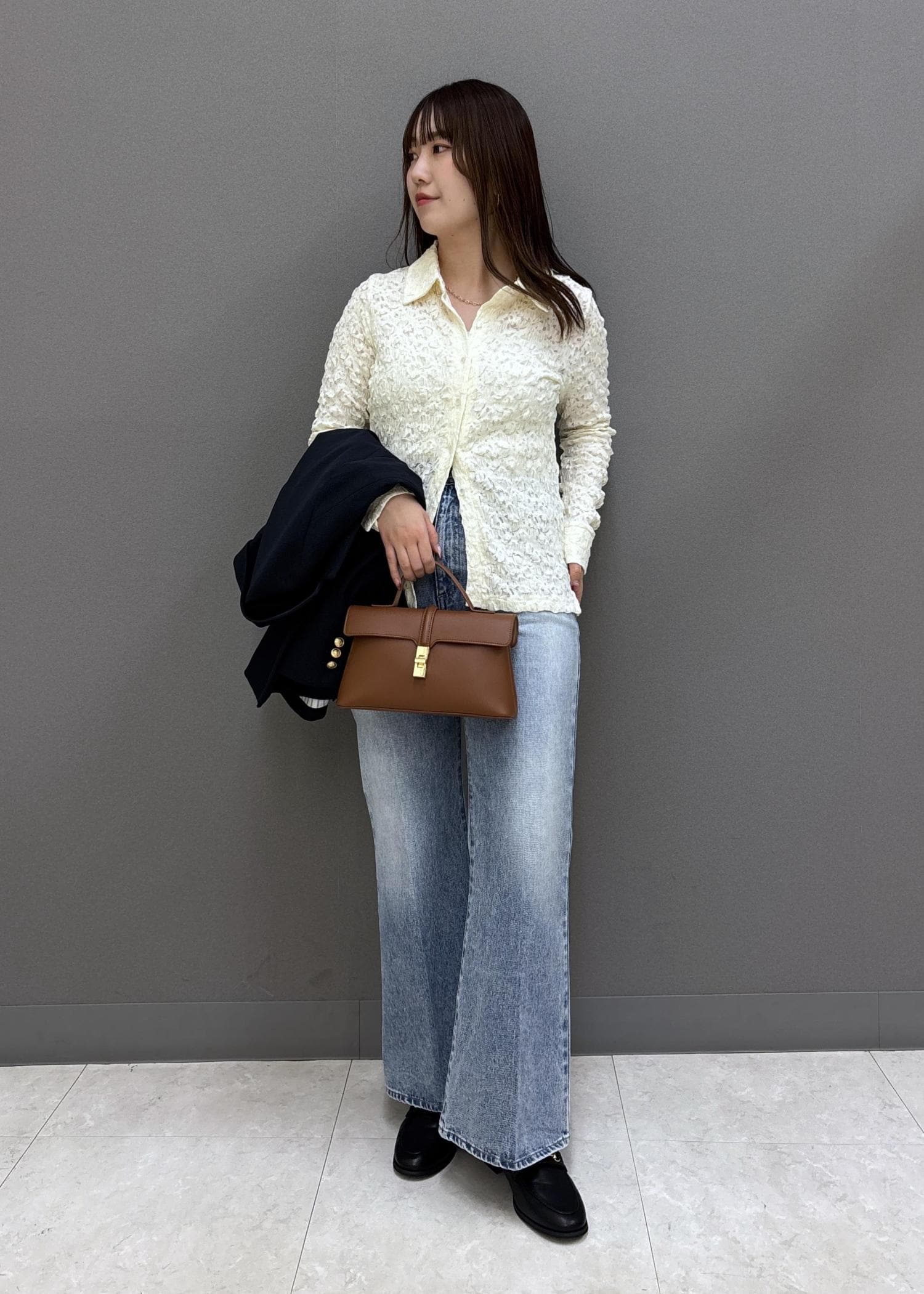 VISストレッチレースジャガード衿付きカーディガンオフホワイト / F¥5,489レビュー160㎝だとヒップにかかる着丈なので、腰まわりもしっかりカバーできます!ストレッチ性のある柔らかい素材で着心地も抜群!凹凸のある生地ですが、着膨れせずに着られました!透け感はあるのでキャミソールやTシャツなど、インナーの合わせは必須です!