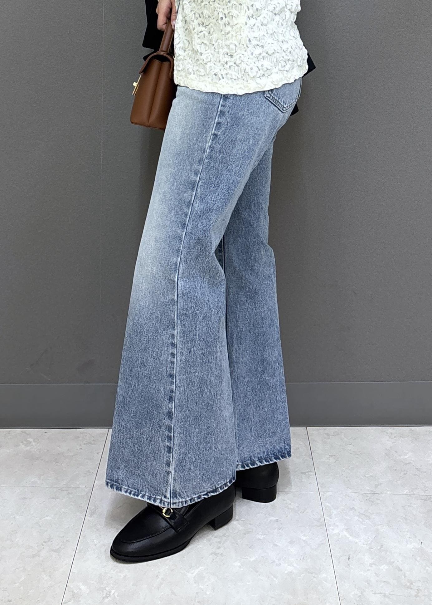 VISフレアシルエットデニムパンツサックス / M¥8,899レビュー160㎝ / Mサイズ着用。ウエスト周りは、ややタイトめですが、Tシャツや薄手のニットはトップスインできました!着丈は足首までしっかり隠れる長さですが、フラットシューズでも合わせられそうです!センタープレス+フレアシルエットが脚長効果◎