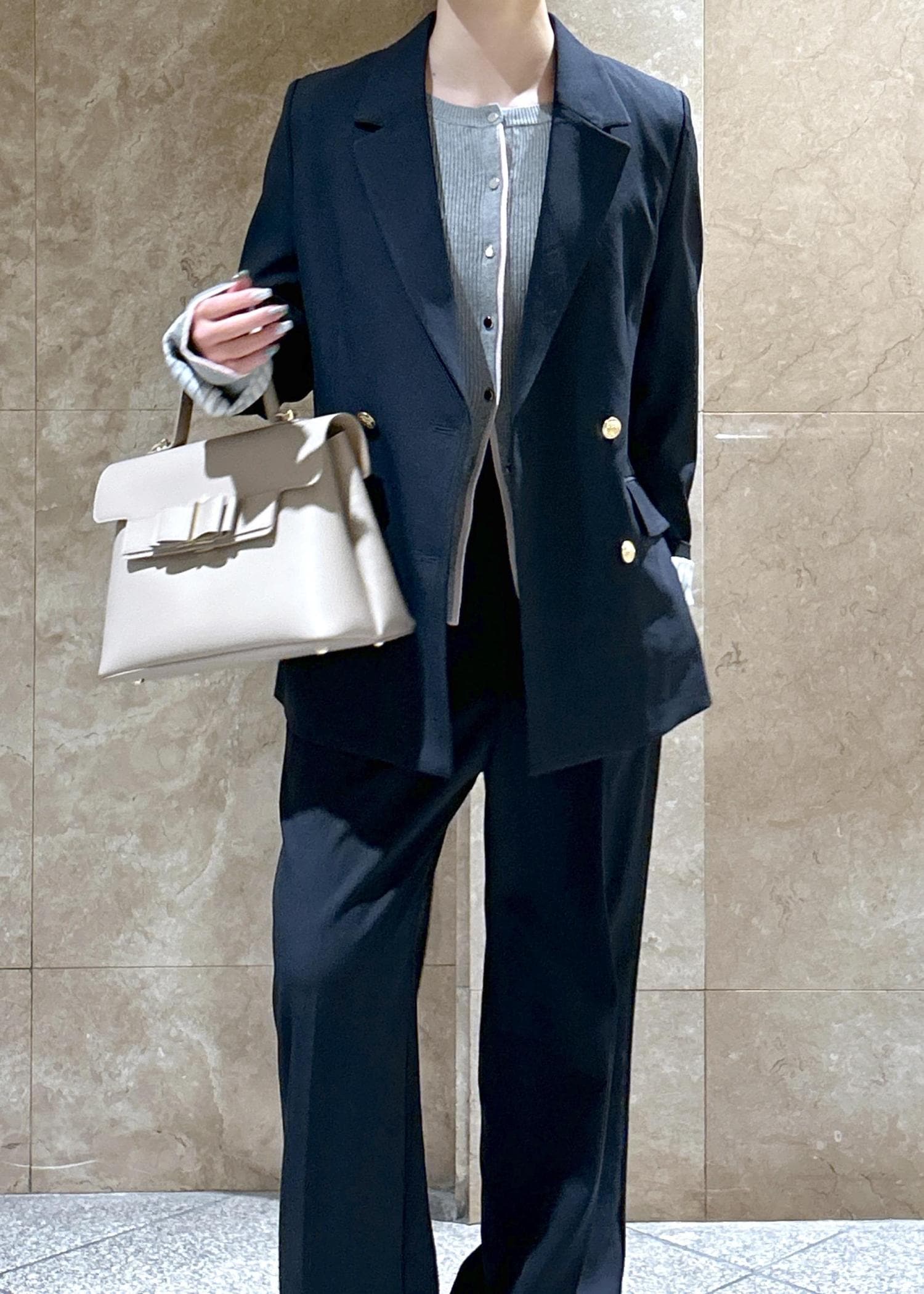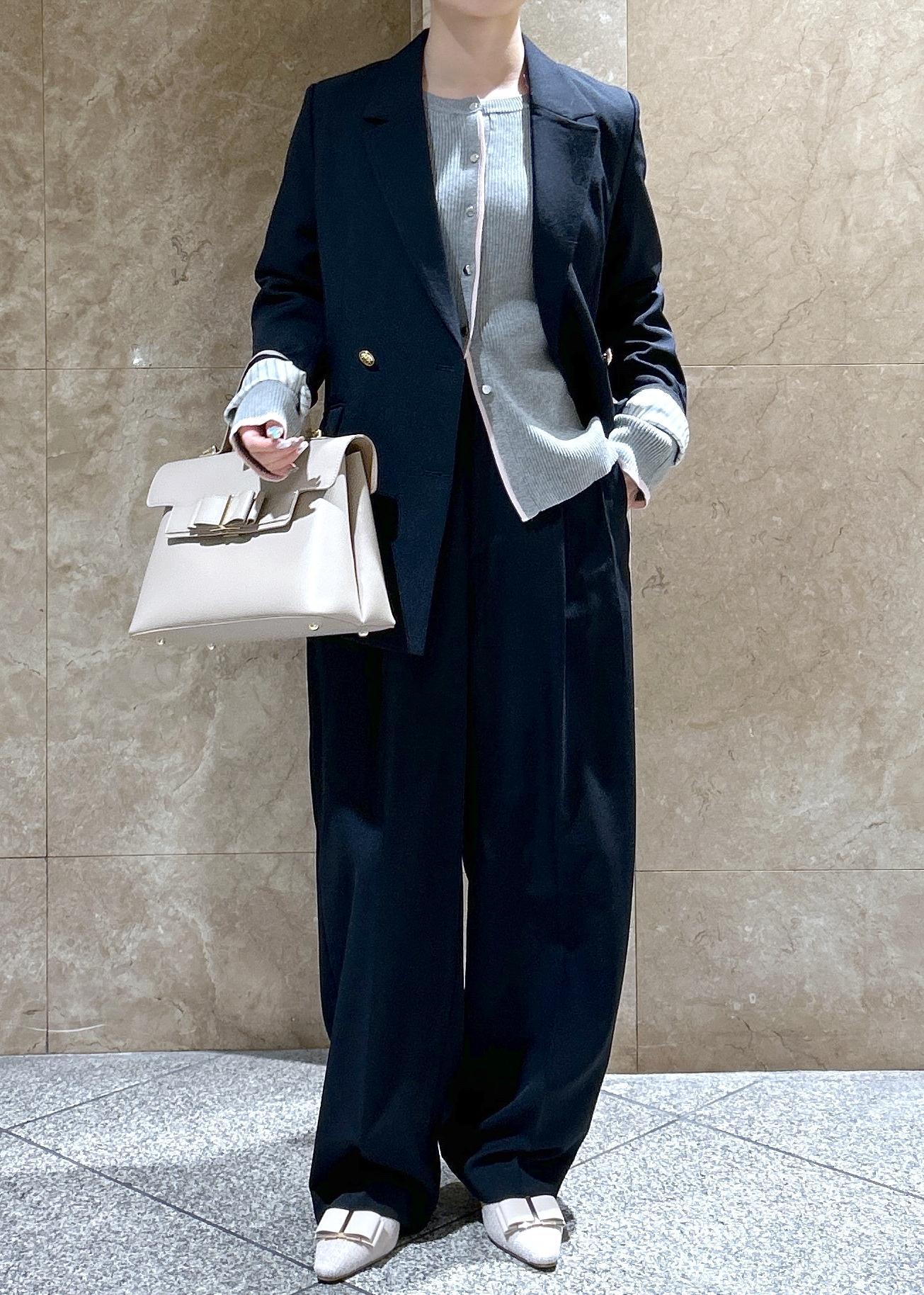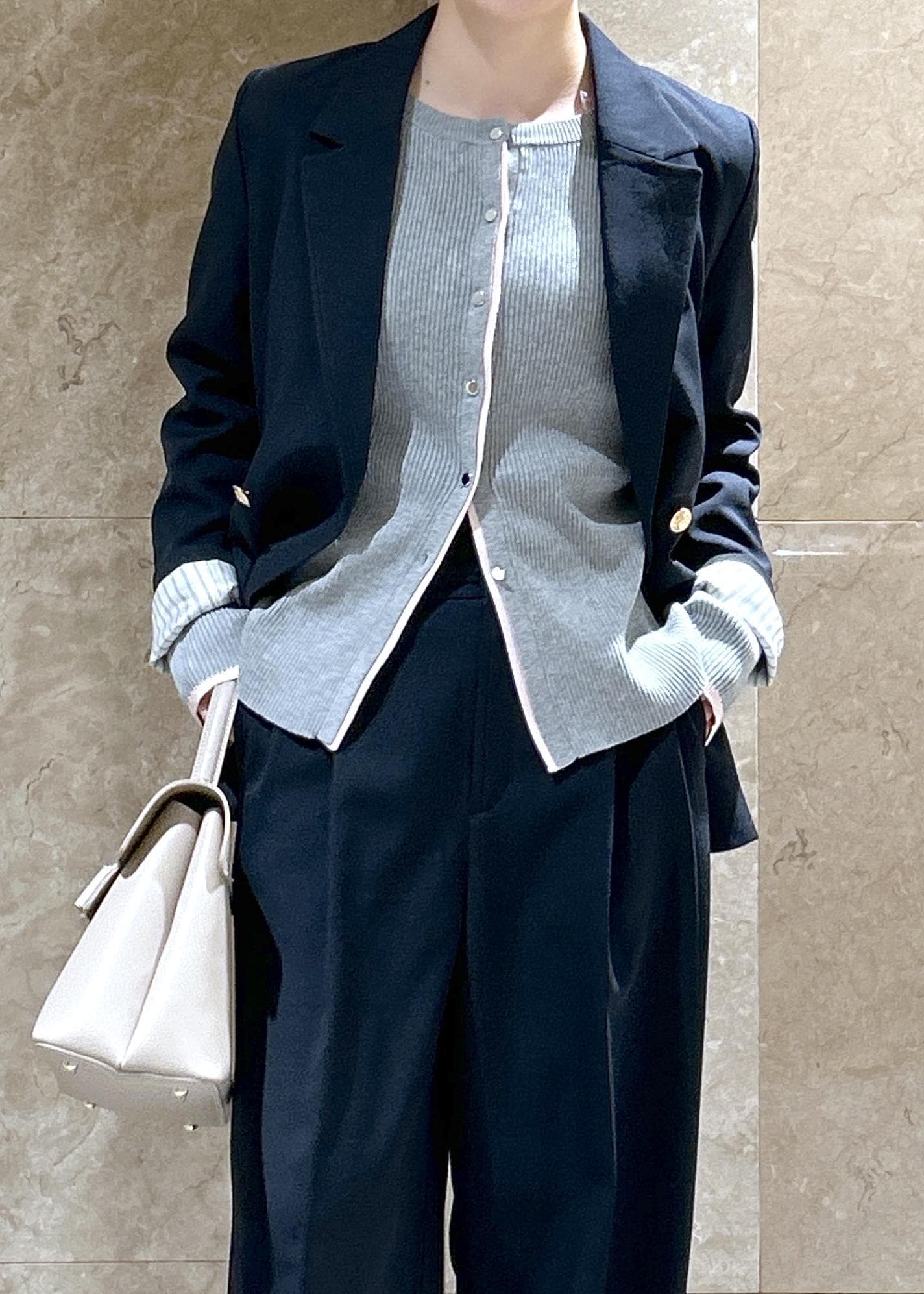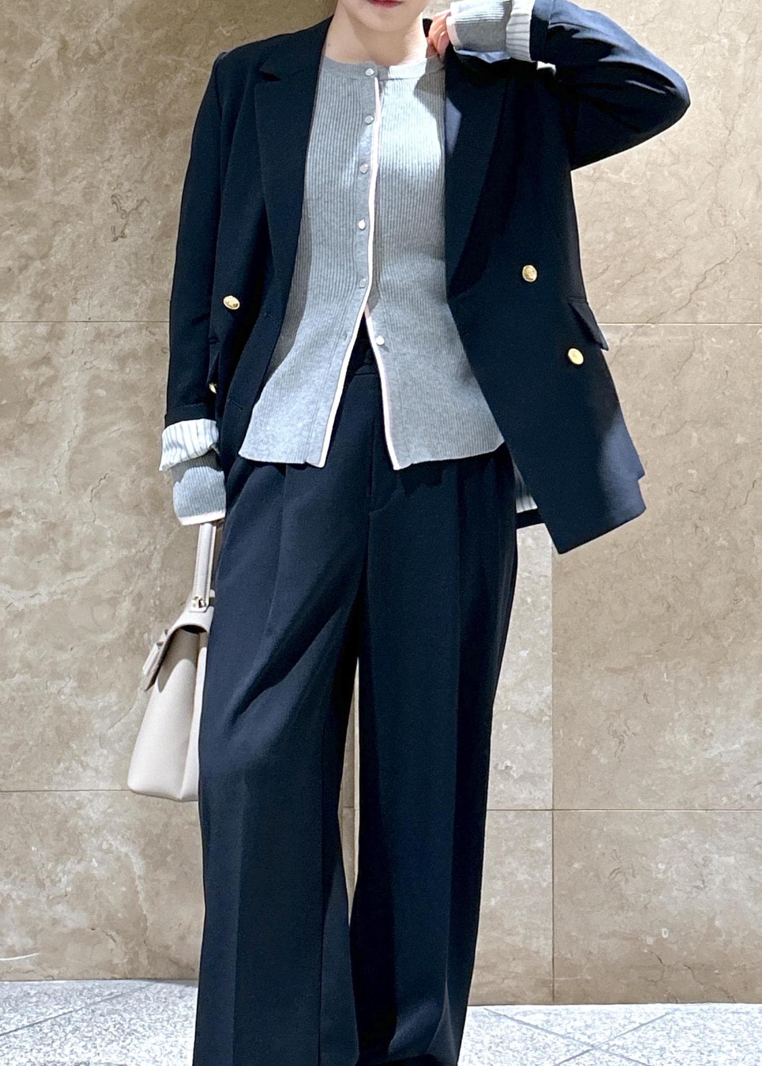 ボタンを閉めて着用した時に、裾部分が綺麗に八の字になるのがポイント♡自然に抜け感を作ってくれます♡
