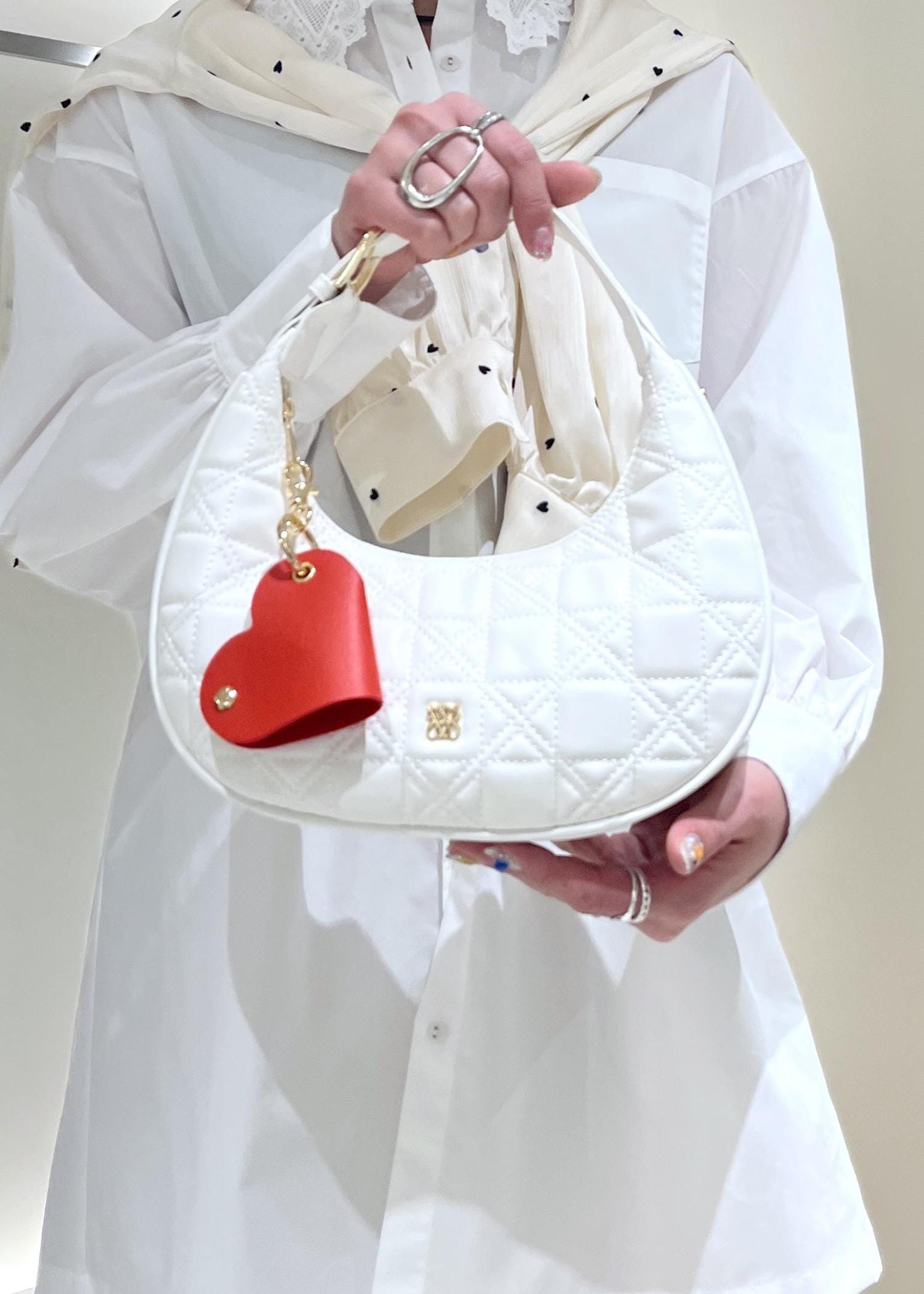 VISハートチャーム付き2WAYキルトバッグオフホワイト / F¥6,919レビューキルティングの可愛さとハントのチャームがポイントに!!ポーチやお財布スマホ、ペットボトルは横にしたら入ります!