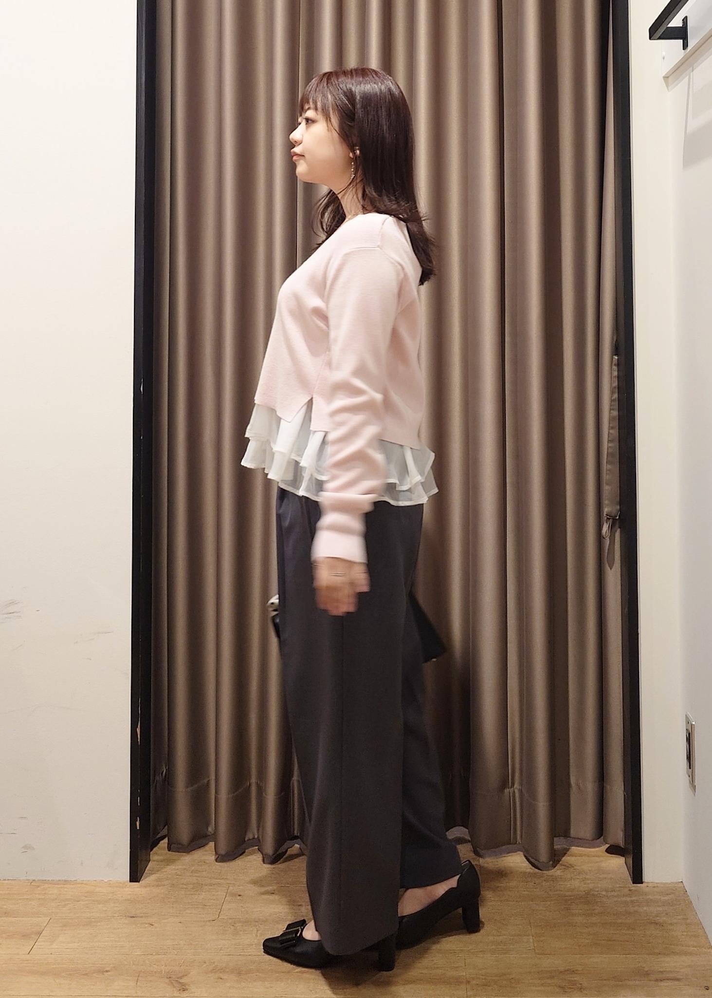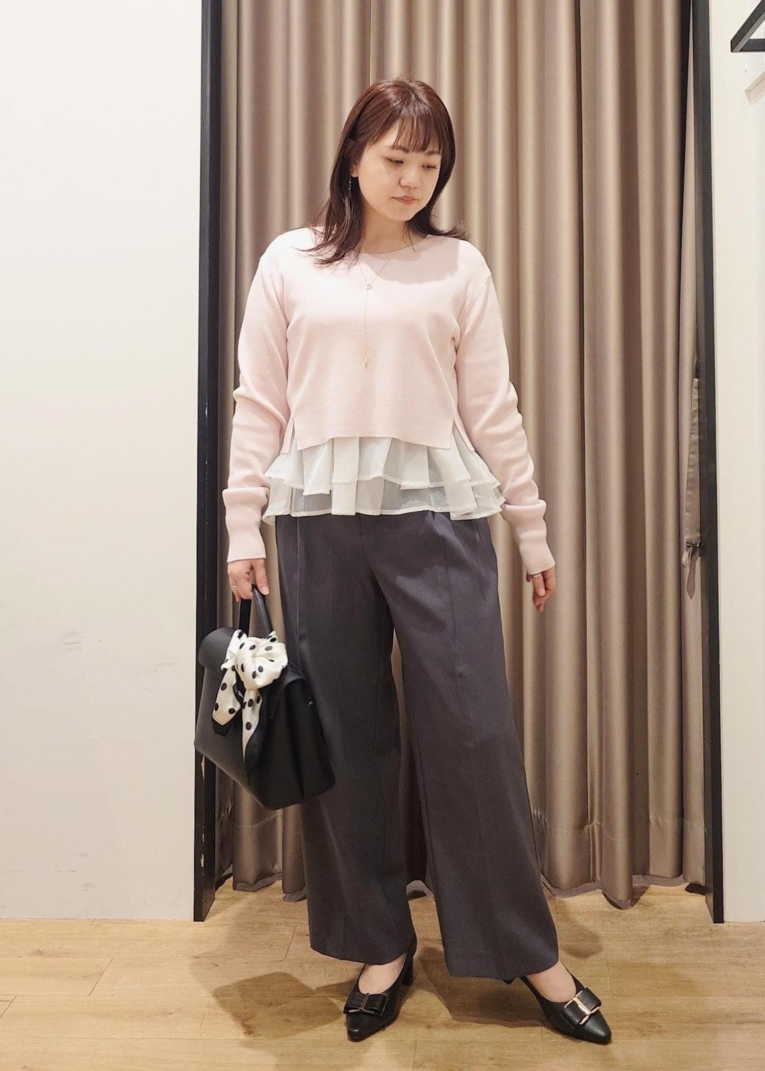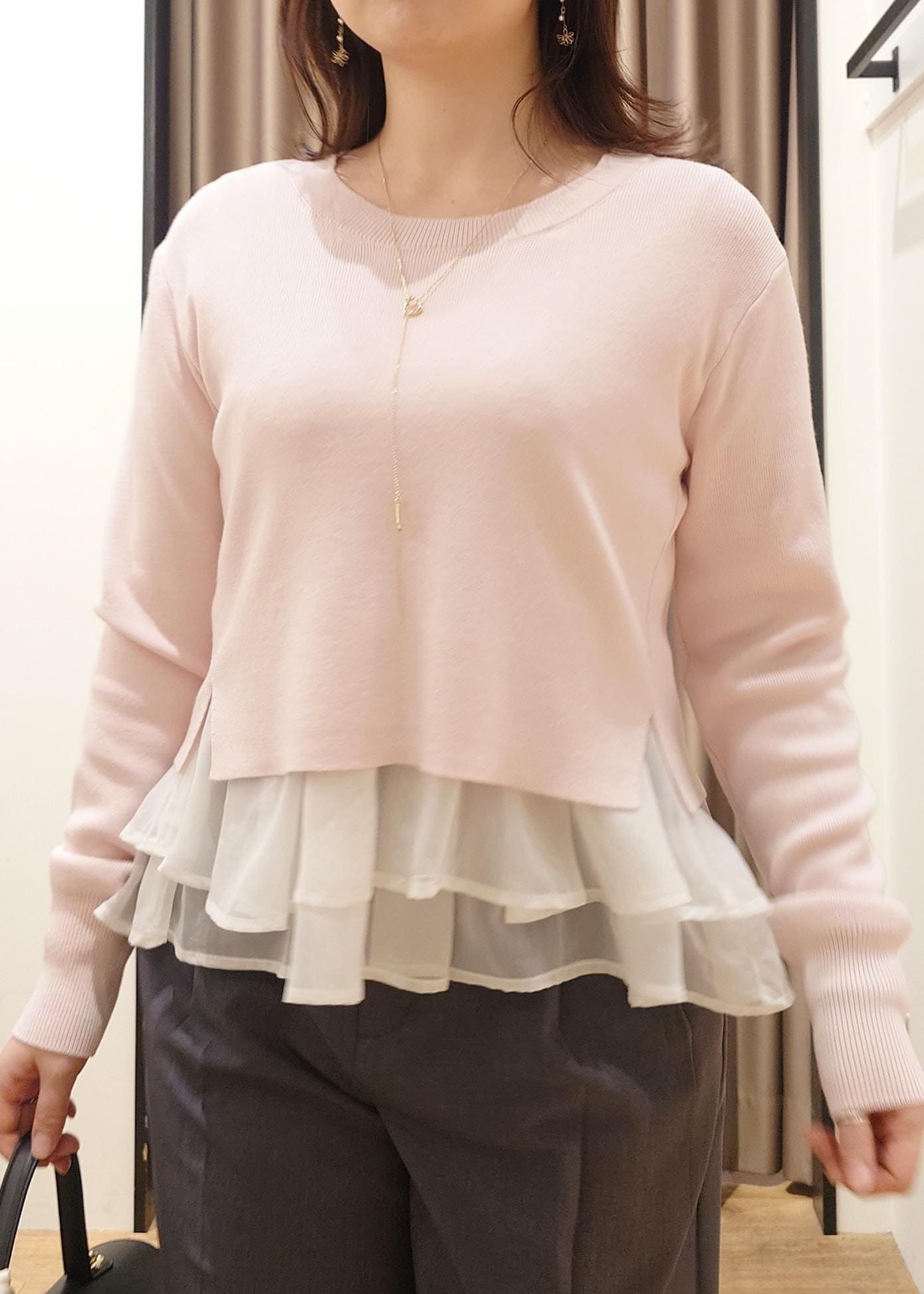 VIS【美得】ペプラムオーガンジードッキングニットプルオーバーピンク / F¥5,929レビューニットは少しふわっとしたような柔らかな生地、裾のオーガンジーはシフォン地のように柔らかい生地で楽な着心地です。