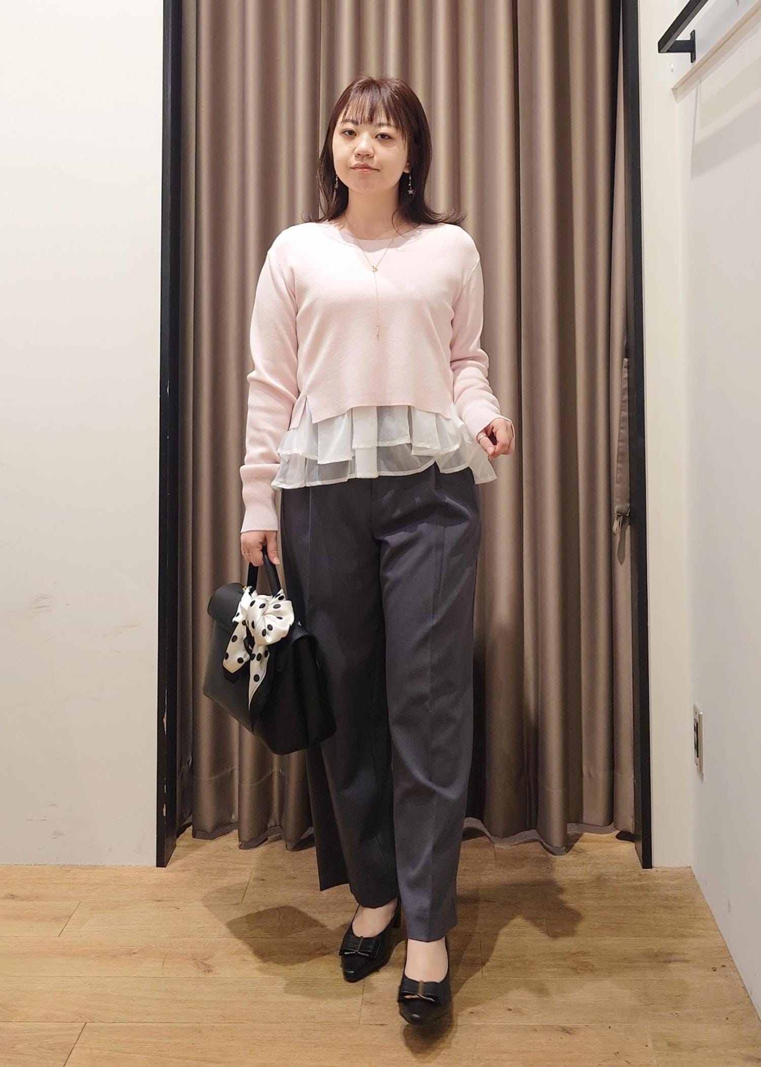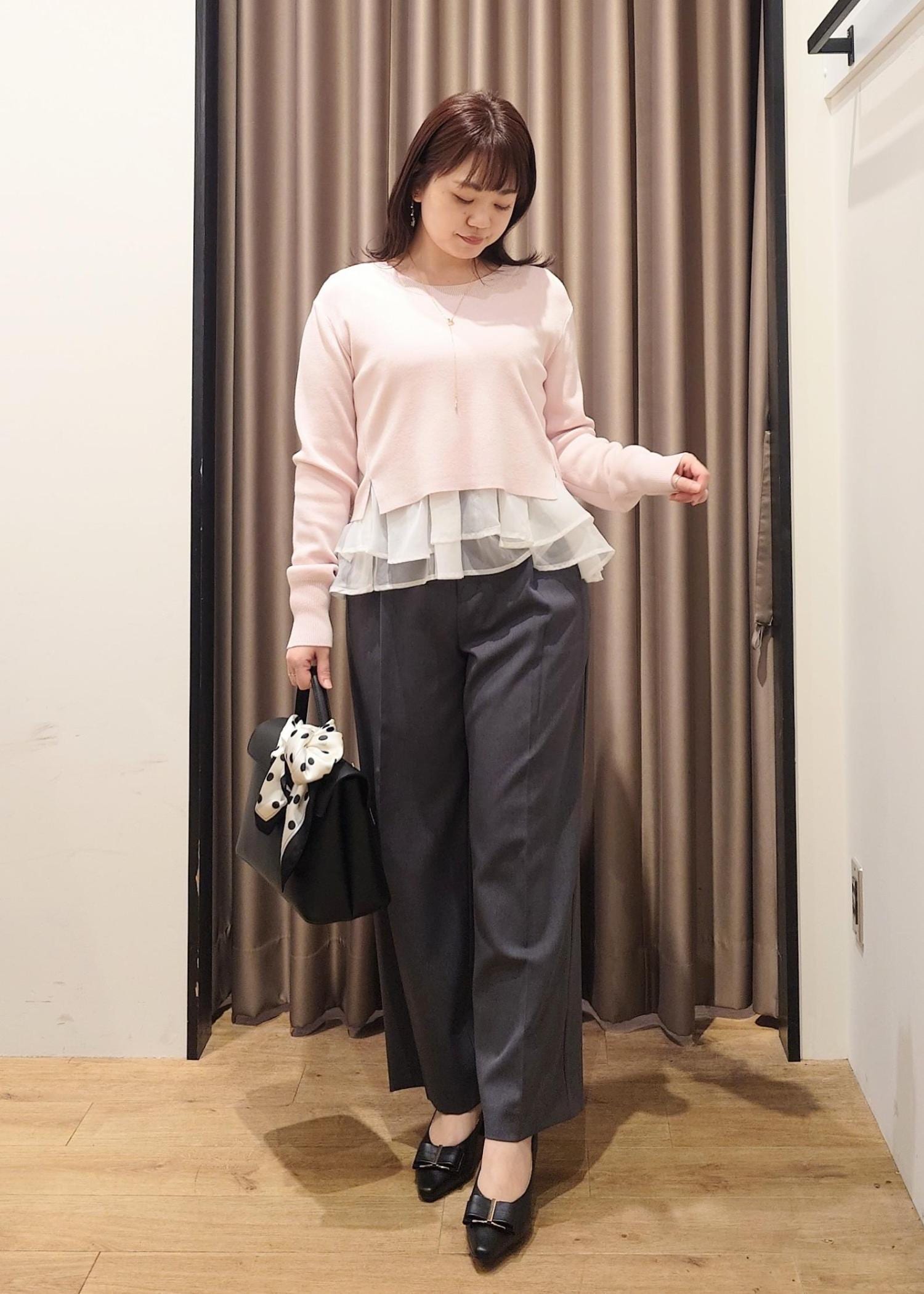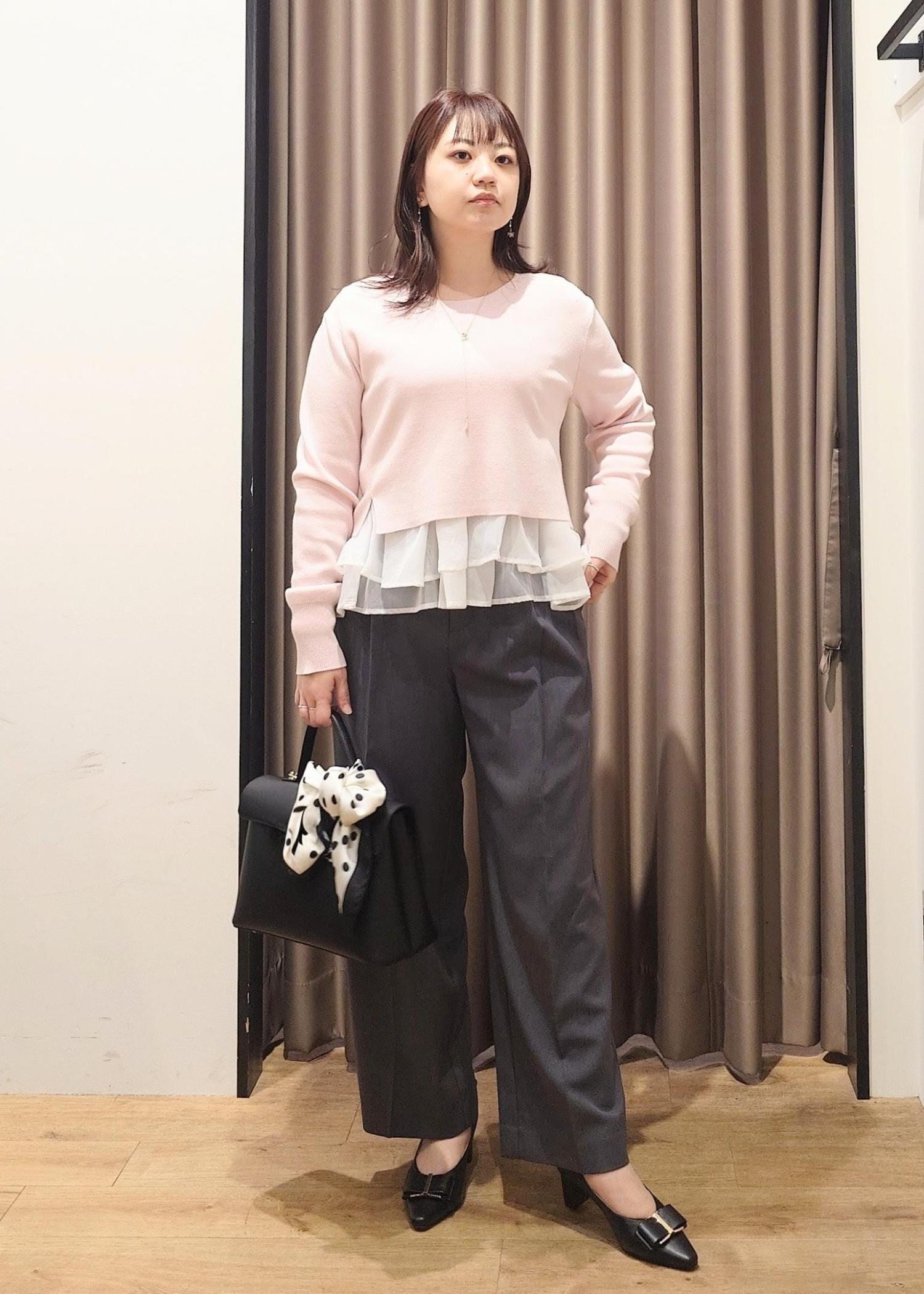 VIS【美得】ペプラムオーガンジードッキングニットプルオーバーピンク / F¥5,929レビューニットは少しふわっとしたような柔らかな生地、裾のオーガンジーはシフォン地のように柔らかい生地で楽な着心地です。