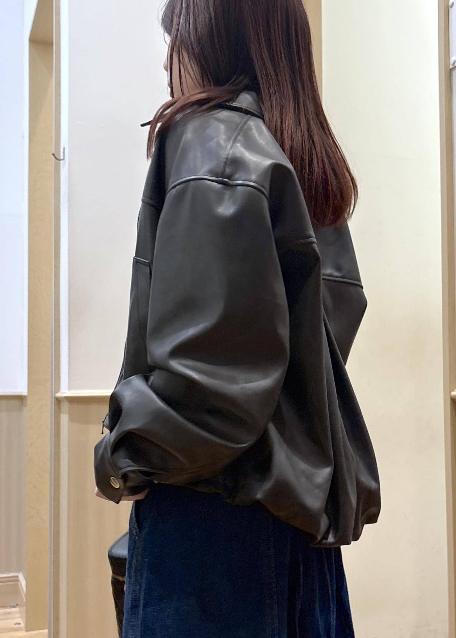 VISアウトポケット合皮ブルゾンブラック / F¥10,989レビュー裾部分にゴムがあるため、伸びが良くどんなトップスとも相性がいいです。