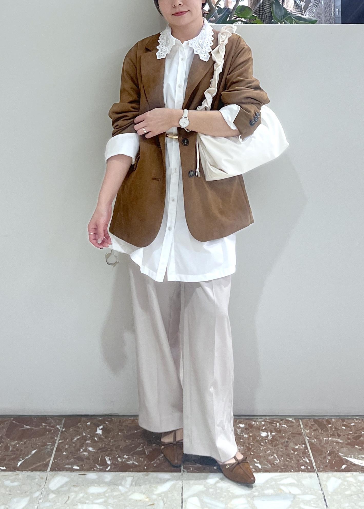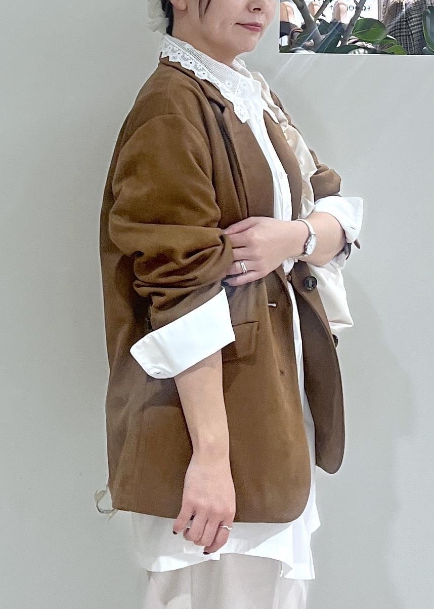 VISオーバースエードテーラードジャケットブラウン / F¥8,899レビューブラウンのスウェードで柔らかい生地なので着心地がいいです。ゆったりとしたサイズでワンサイズ大きめです。157cmでお尻周りもカバーできる丈で着られました。