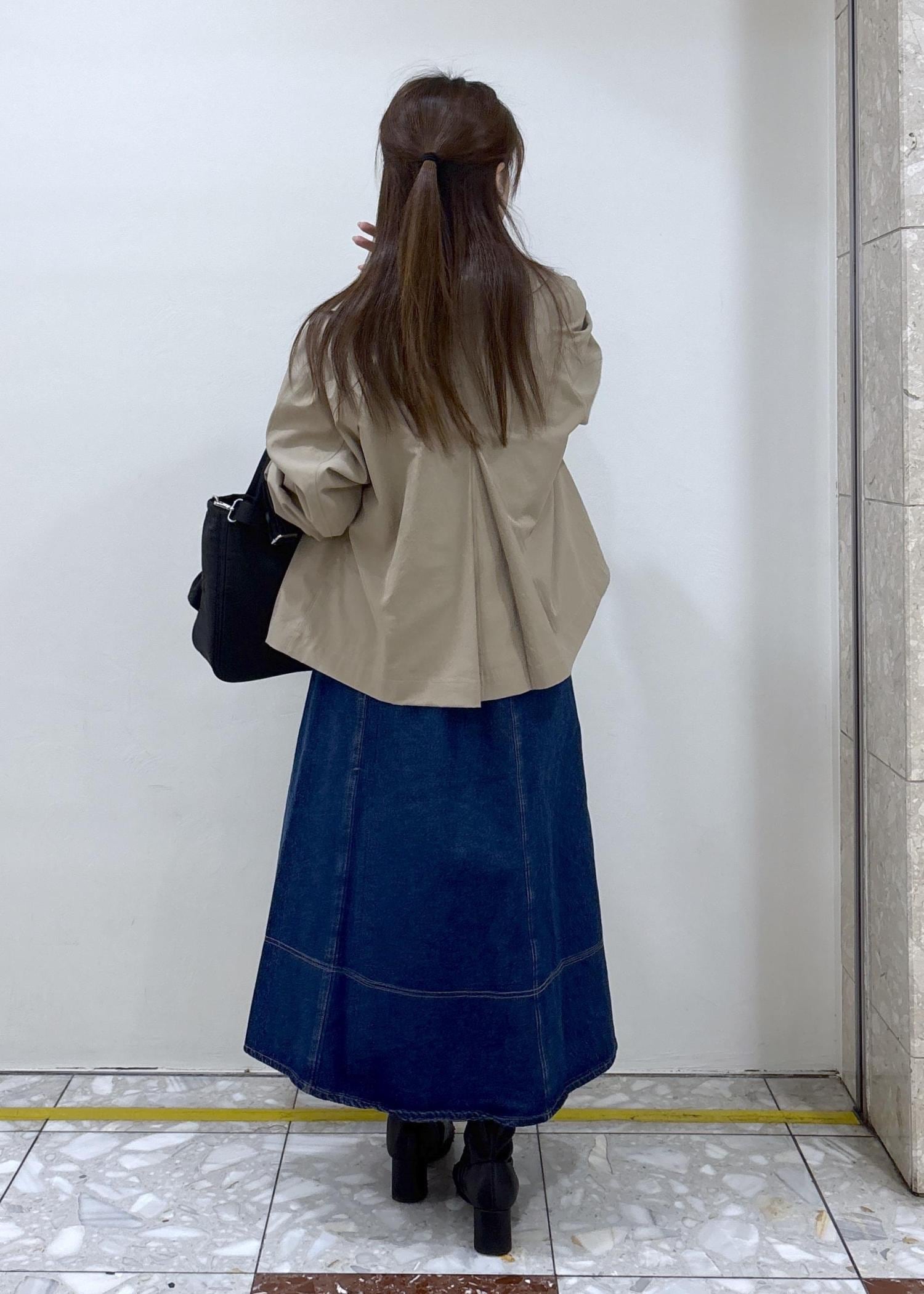 デニムのスカートはペタっとしたものが多いですが、シルエットが立体的でふんわりしているのが可愛いです〜♡ -