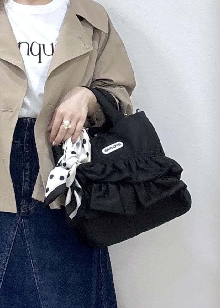 予約VIS【OUTDOOR PRODUCTS】VIS別注2WAYフリルトートバッグブラック / F¥8,580レビューフェミニン感もしっかり兼ね備えたOUTDOORコラボバッグ。軽い生地感とフリルの感じが春服との合わせもばっちりです¨̮⃝