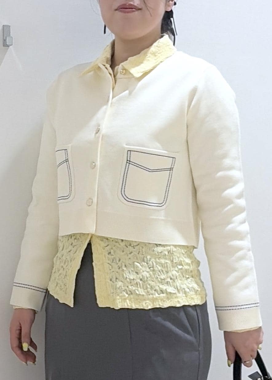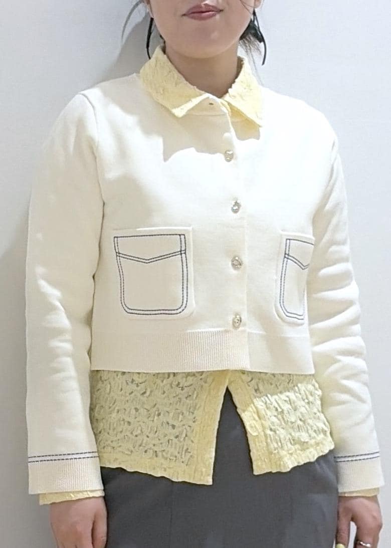 VISステッチワークニットジャケットオフホワイト / F¥5,929レビュー裾が切りっぱなしのように広めなのでレイヤードしやすく、窮屈感もなく着用できました。