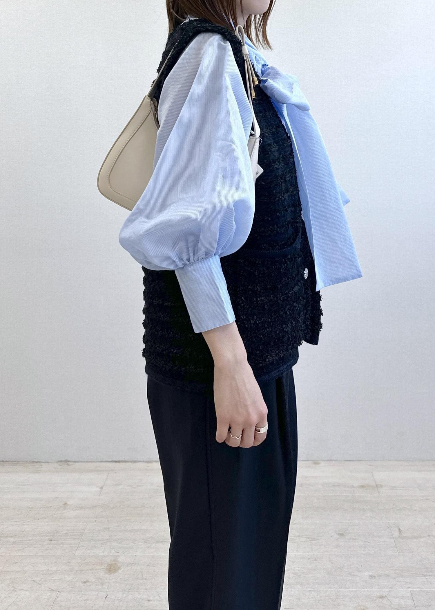 少しハリのある素材で、お袖のボリューム感がきれいにでるデザインです。 -