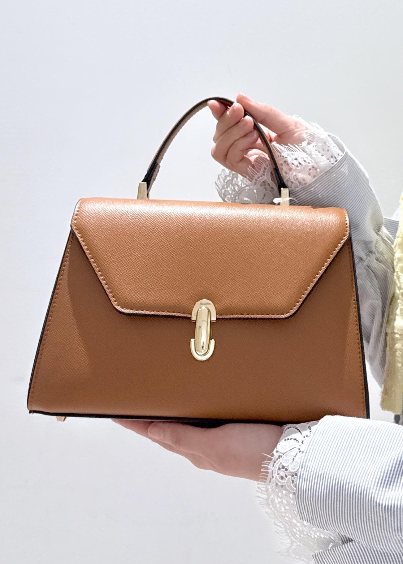 VIS楕円金具ワンハンドルバッグ/2WAYキャメル / F¥7,909レビュー台形型のワンハンドルバックで、見た目が上品らしさもあり高見えすることもあって実際に私もリアルバイしてしまいました♡ショルダーバッグの紐が入っているので2wayで使うことができ、気分に合わせてどちらでも使用可能◎コンパクトなサイズ感で意外とマチも広めなので容量も入ります。中には財布や携帯、ミニポーチなど必要最低限の物は入るのでオススメです!