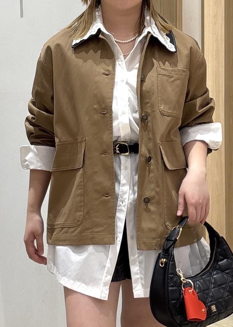 VISバイカラー衿カバーオールキャメル / F¥9,999レビュー襟がバイカラーになっていて素材も軽いので、カジュアルコーデには重宝するアイテムです!