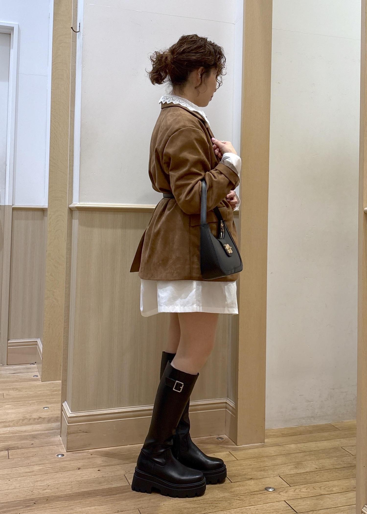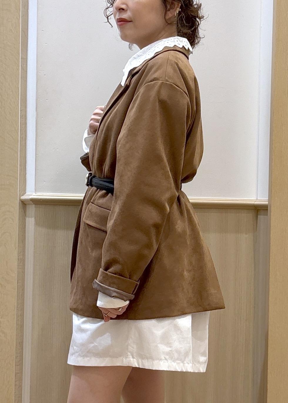 VISオーバースエードテーラードジャケットブラウン / F¥8,899レビュー153cmでお尻がすっぽり隠れる丈感です。