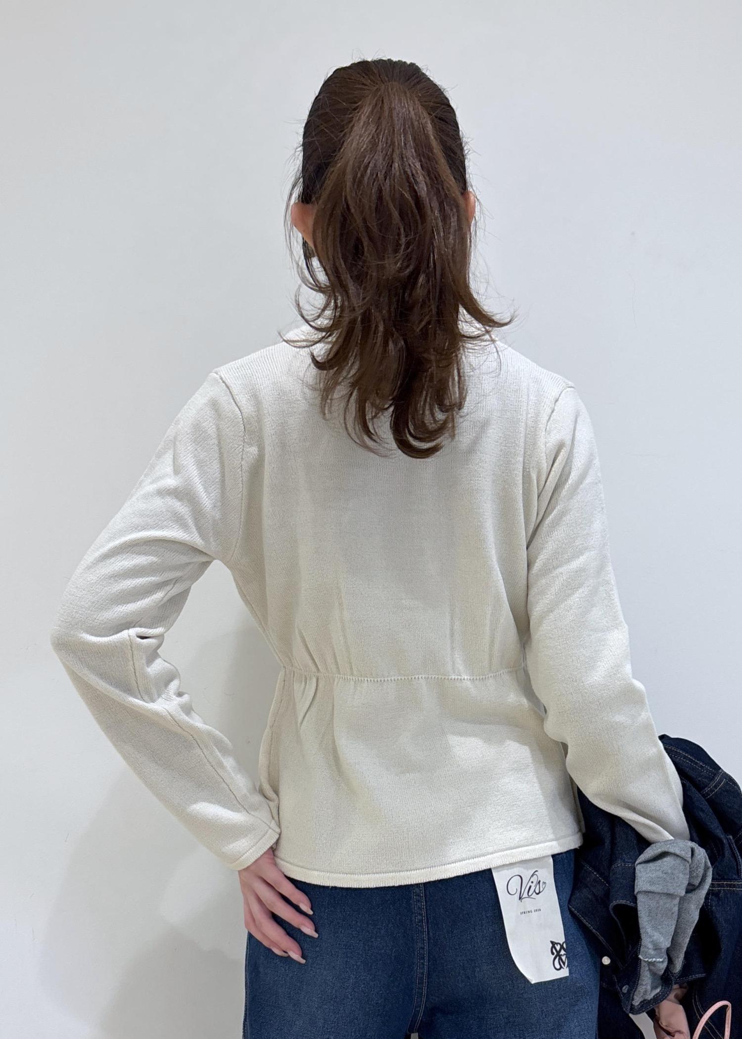VISギャザーニットカーデオフホワイト / F¥5,929レビューギャザーデザインがスッキリ見えし、ペプラムシルエットなので腰まわりもカバーできます◎