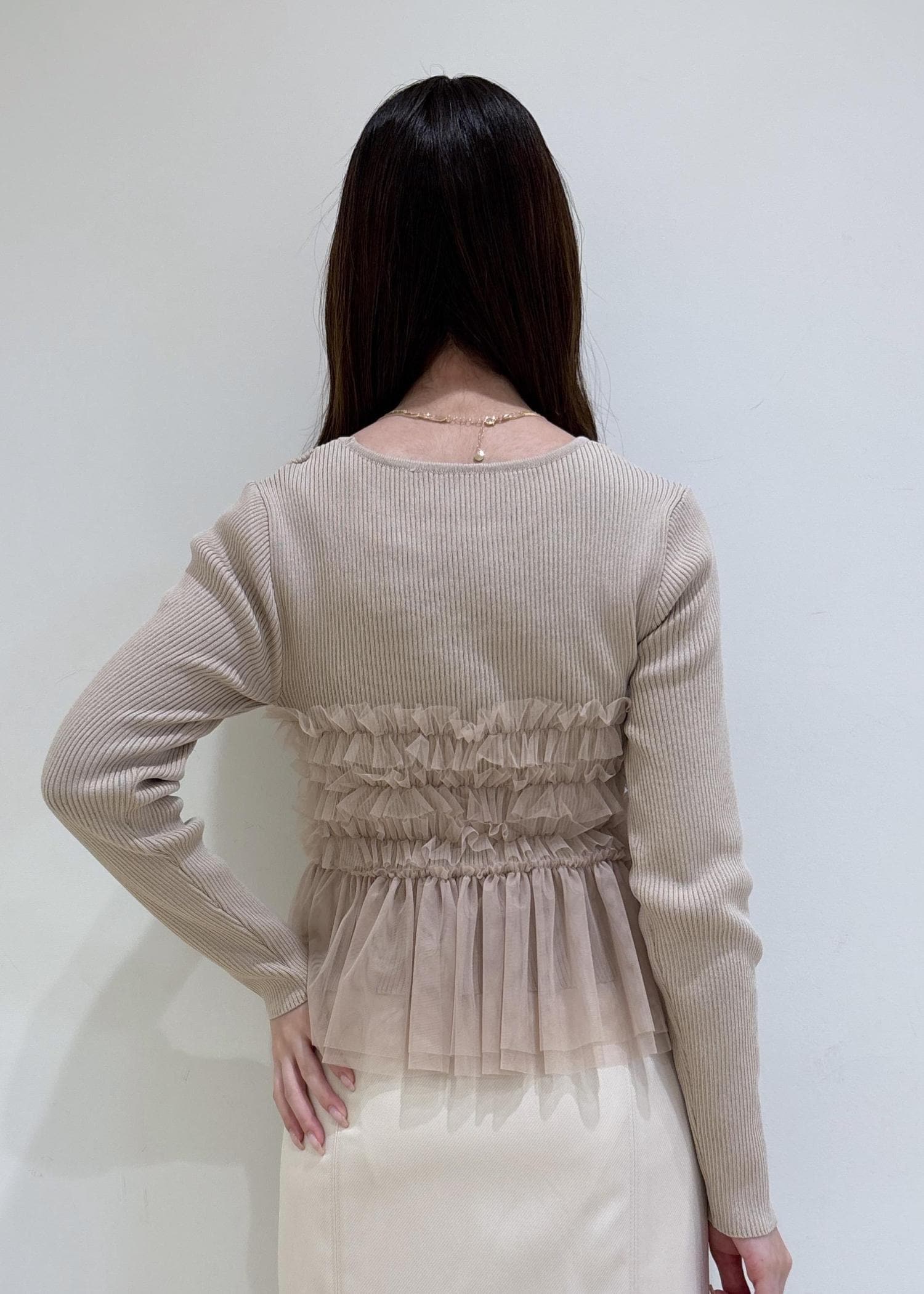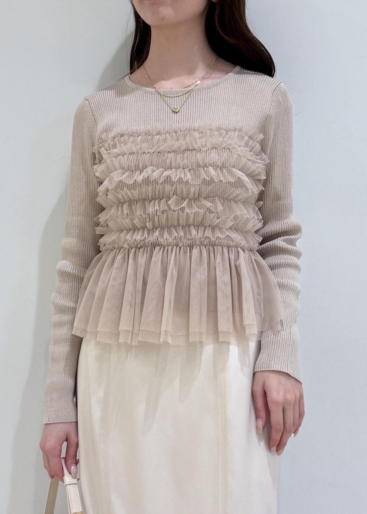 VISチュールフリルドッキングニット/イージーケアベージュ / F¥6,589レビューチュールフリルが華やかです。
