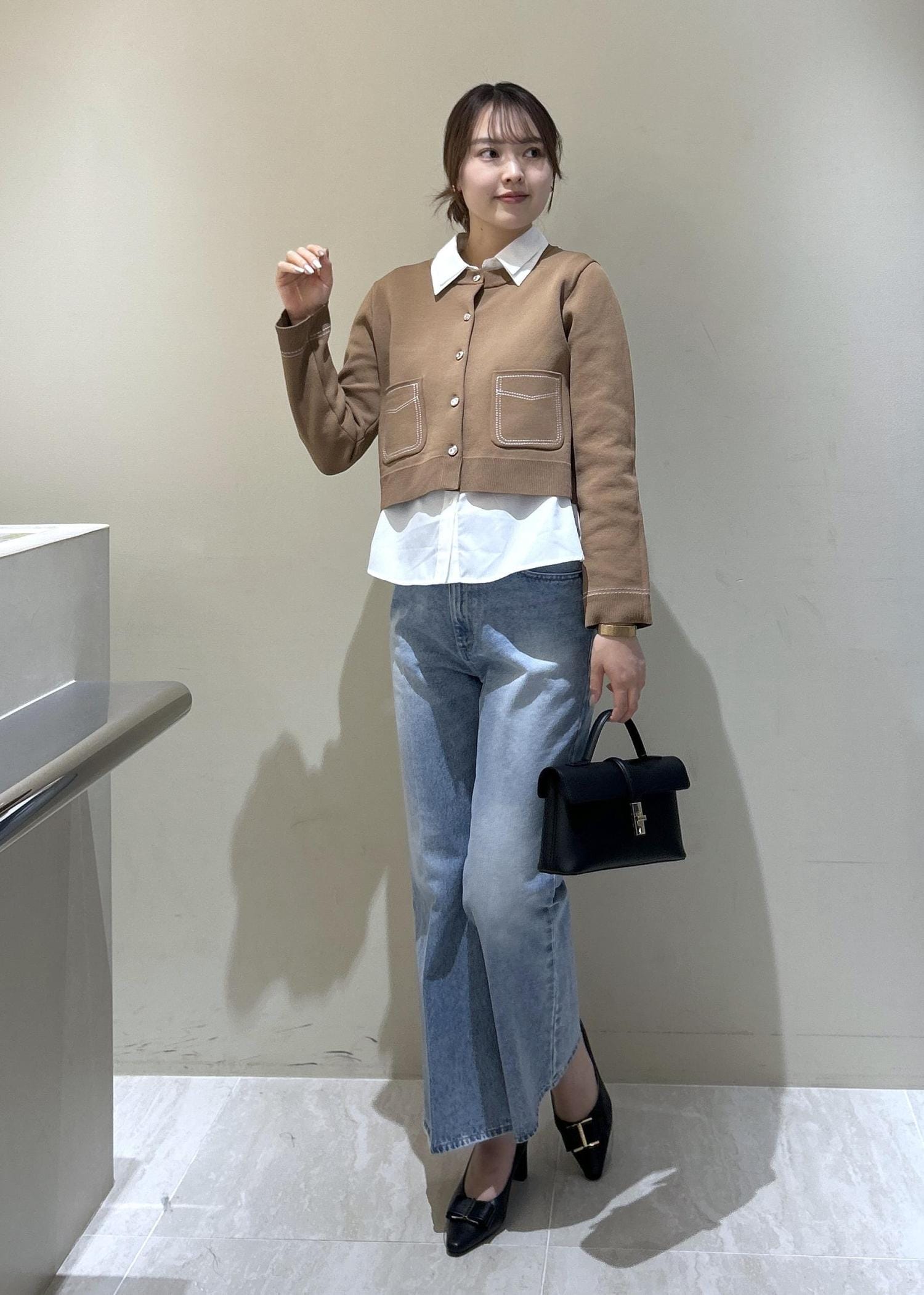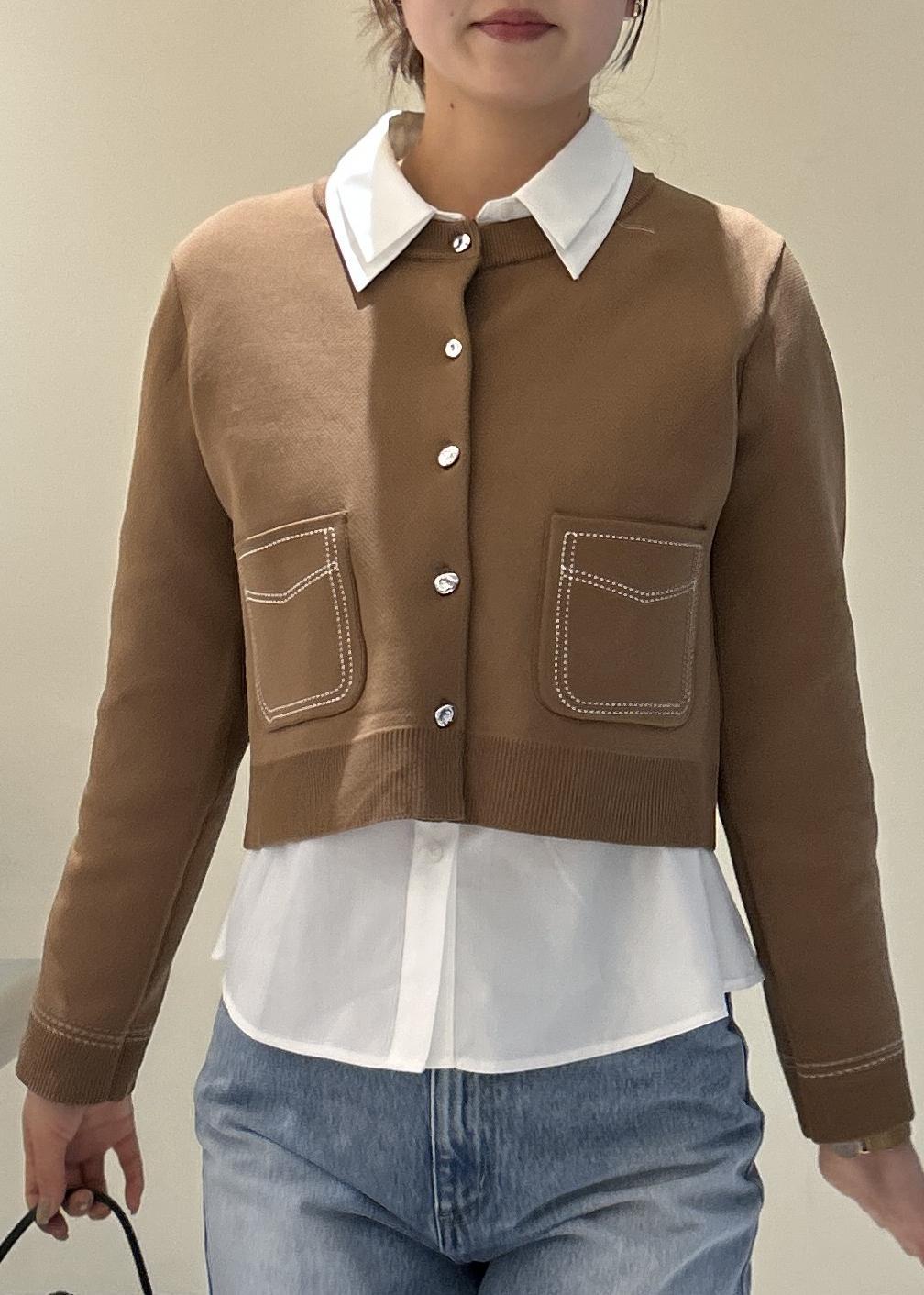 VISステッチワークニットジャケットキャメル / F¥5,929レビューサイズ感▶︎おへそは隠れる長さですが短丈ですっきりした丈感です。
