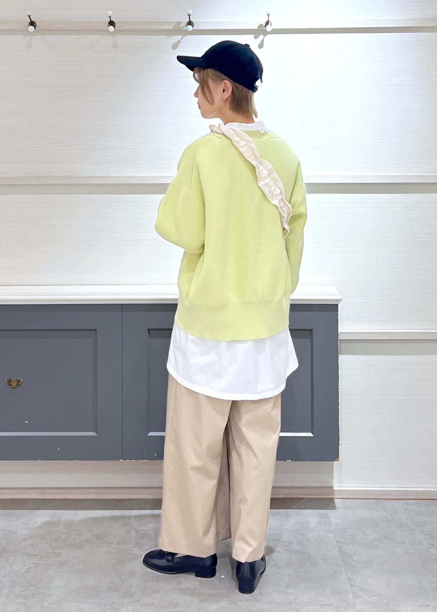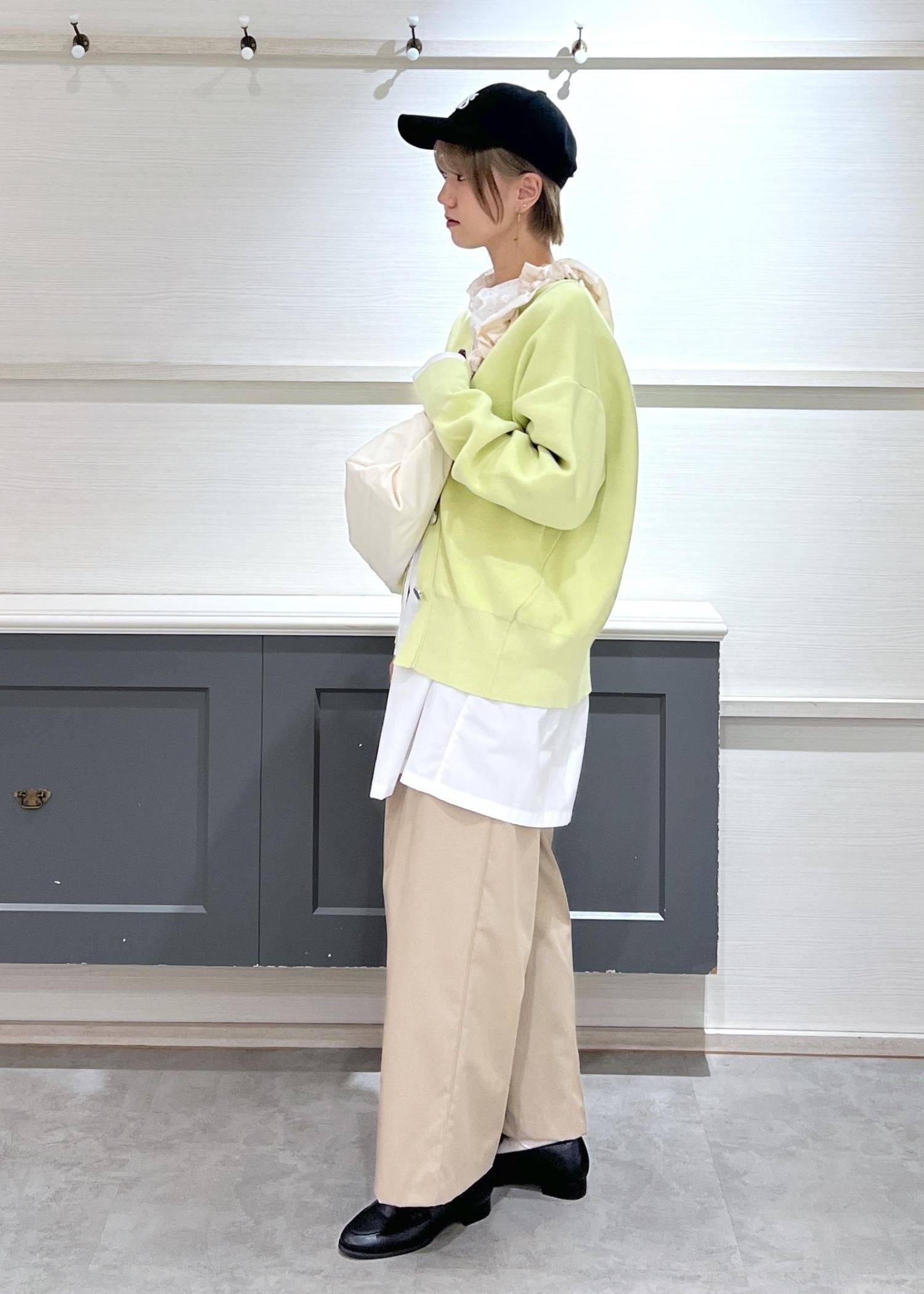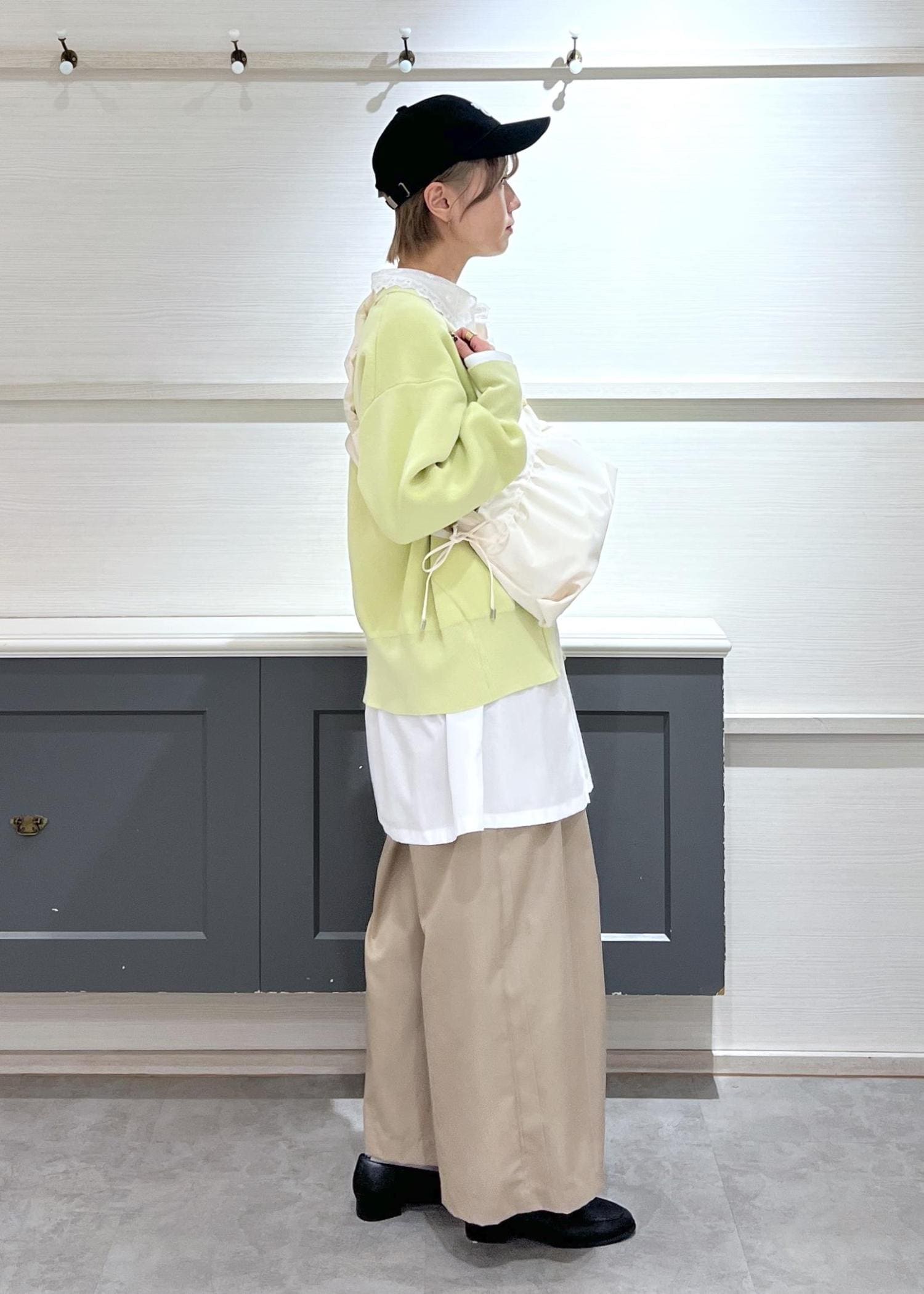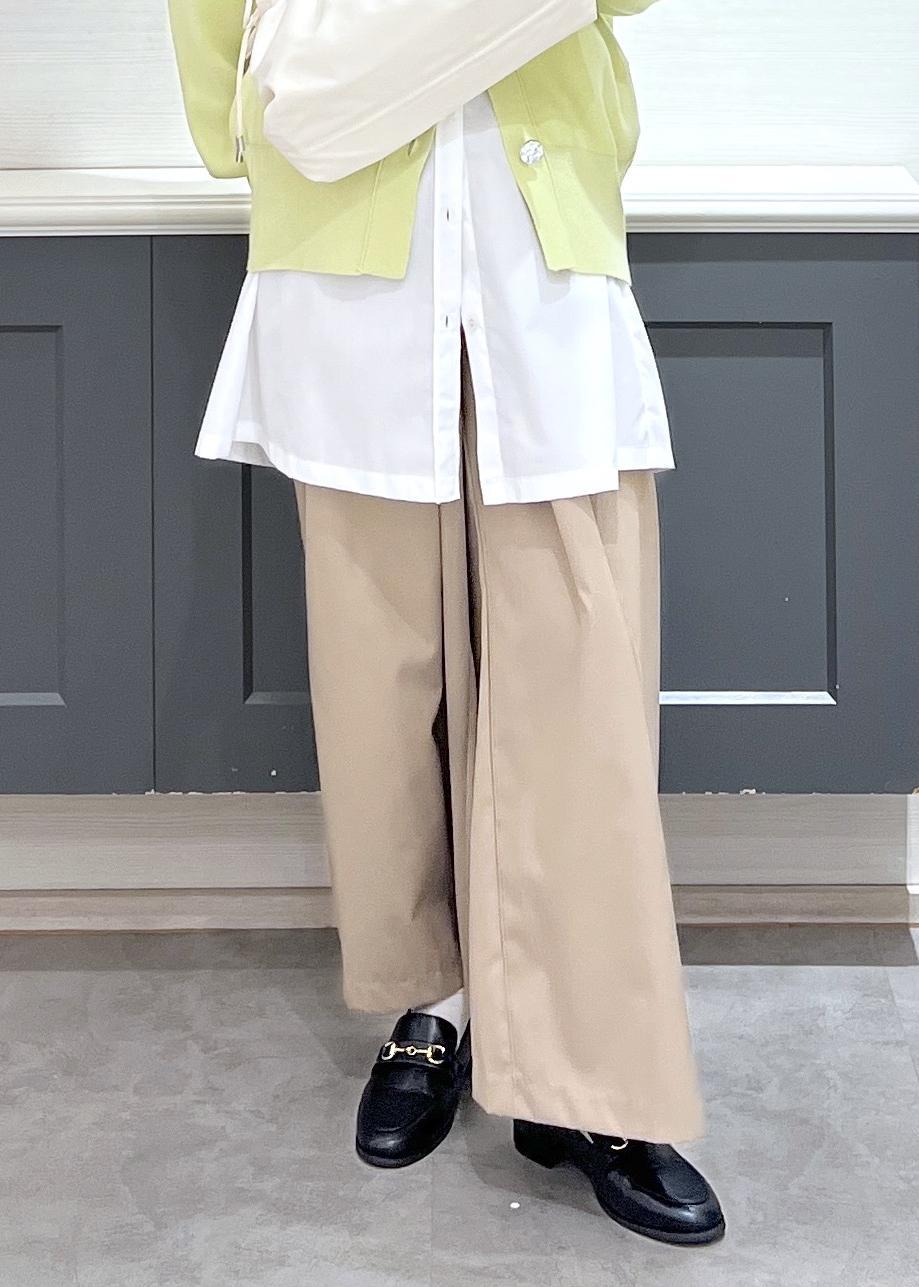 ワイドなシルエットですが腰回りがすっきりしているのでどんなトップスにもバランスよく合わせていただけます。 -