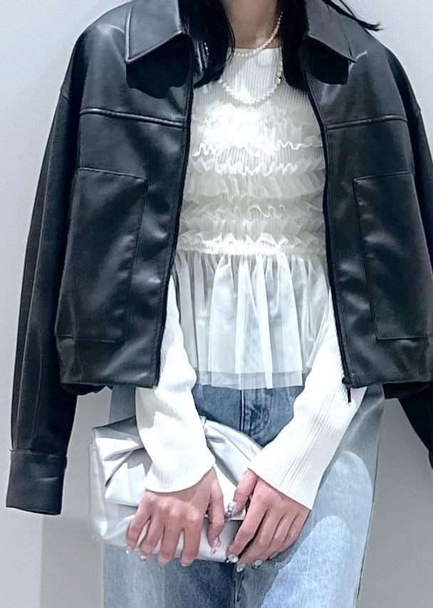 裾のぺプラムと繊細なチュールが大人フェミニンな印象になり、ワイドパンツやデニムと相性抜群です! -