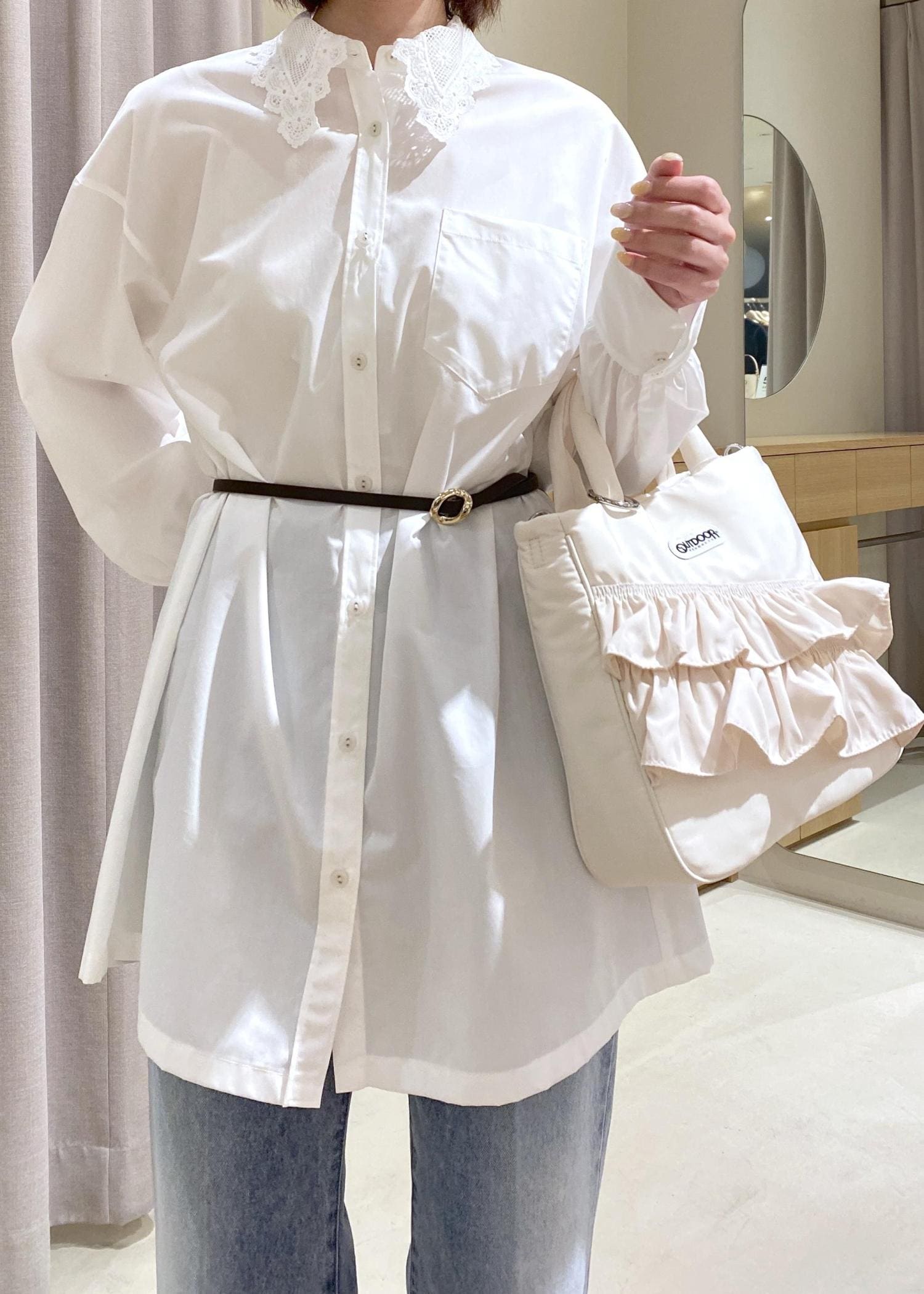 VIS襟レース付きミニ丈シャツワンピホワイト / F¥7,689レビュー襟がレースのシャツワンピです!
