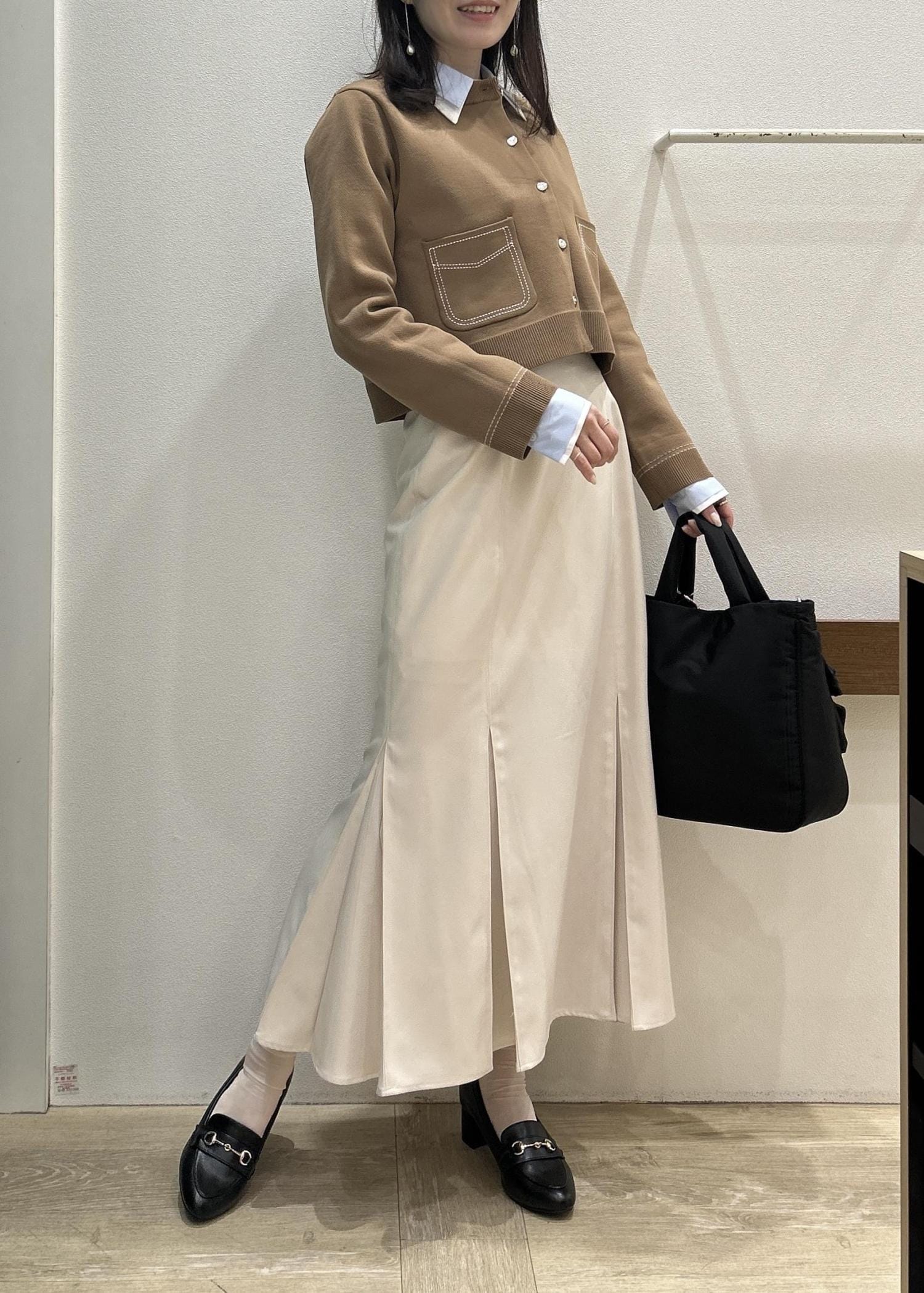 VISボックスプリーツマーメイドスカート/イージーケア・防シワベージュ / M¥6,589レビュー長さ重視でMを着用していますが、腰回りがかなりゆとりあります。