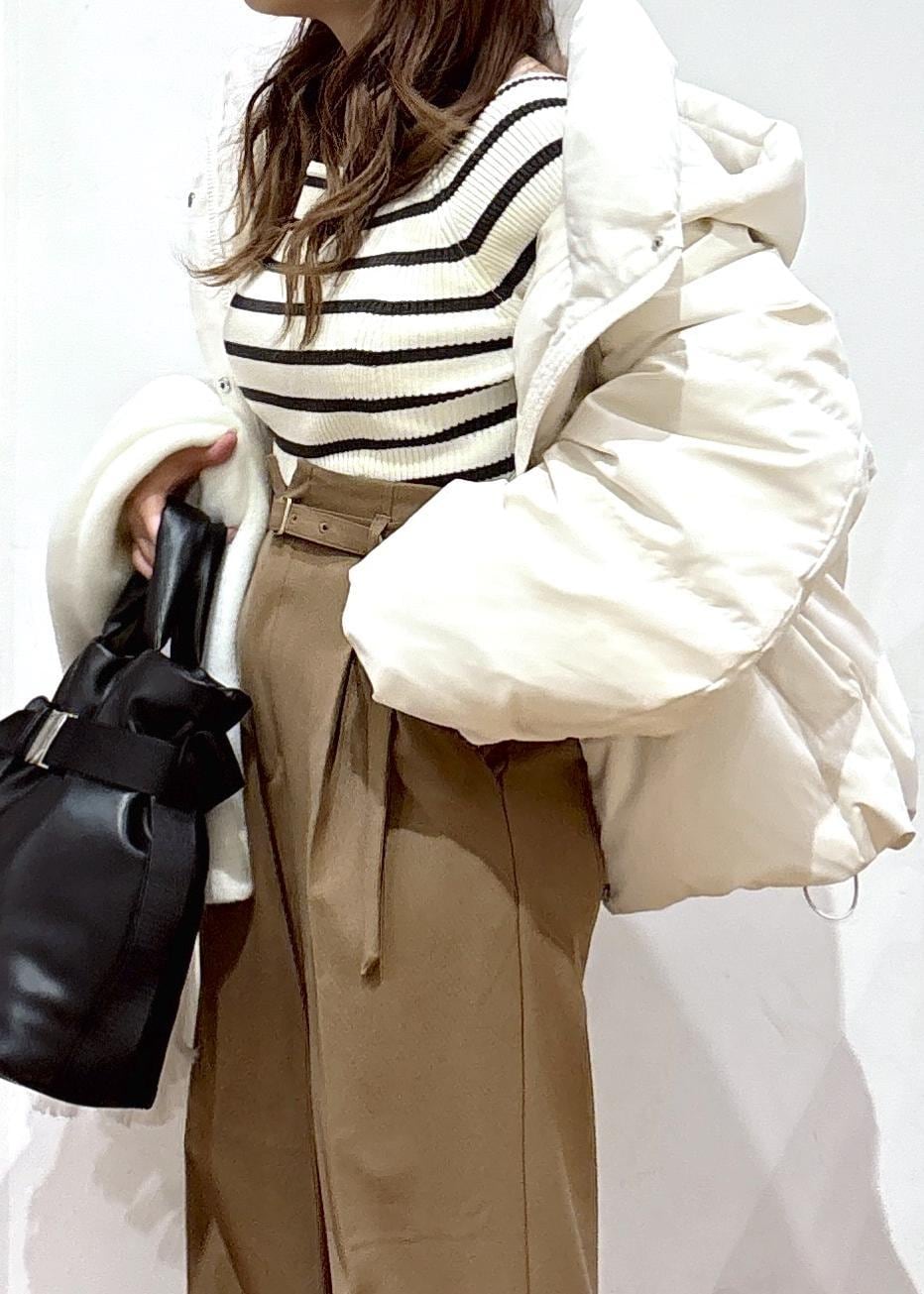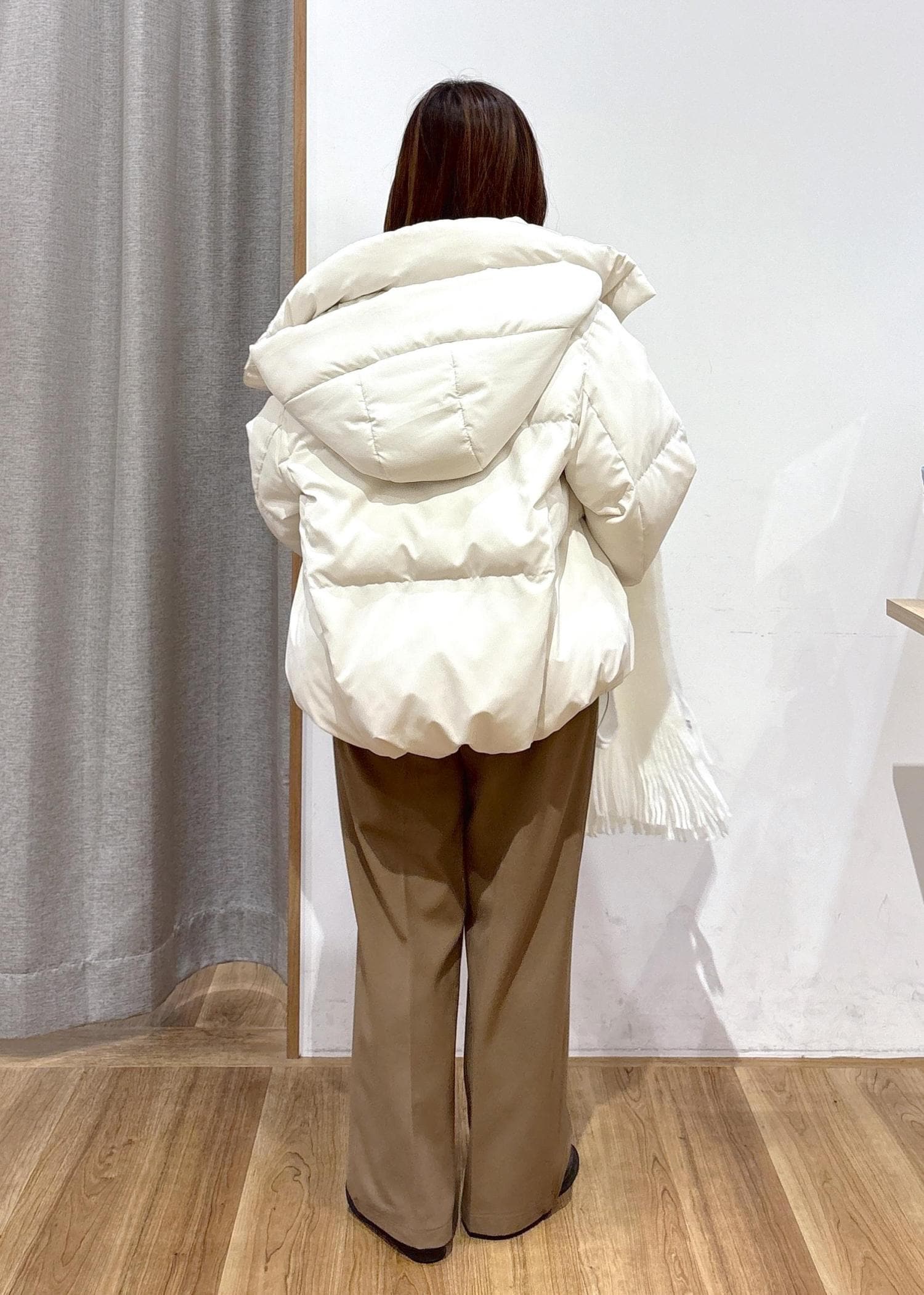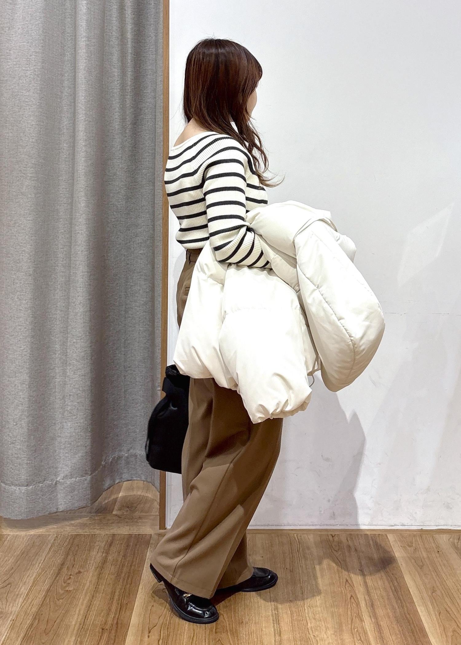 低身長だと厚みでモコモコと埋まってしまいやすいダウンジャケットですが、こちらは程よい厚みと丈感で扱いやすく、着合わせやすいアイテムです。