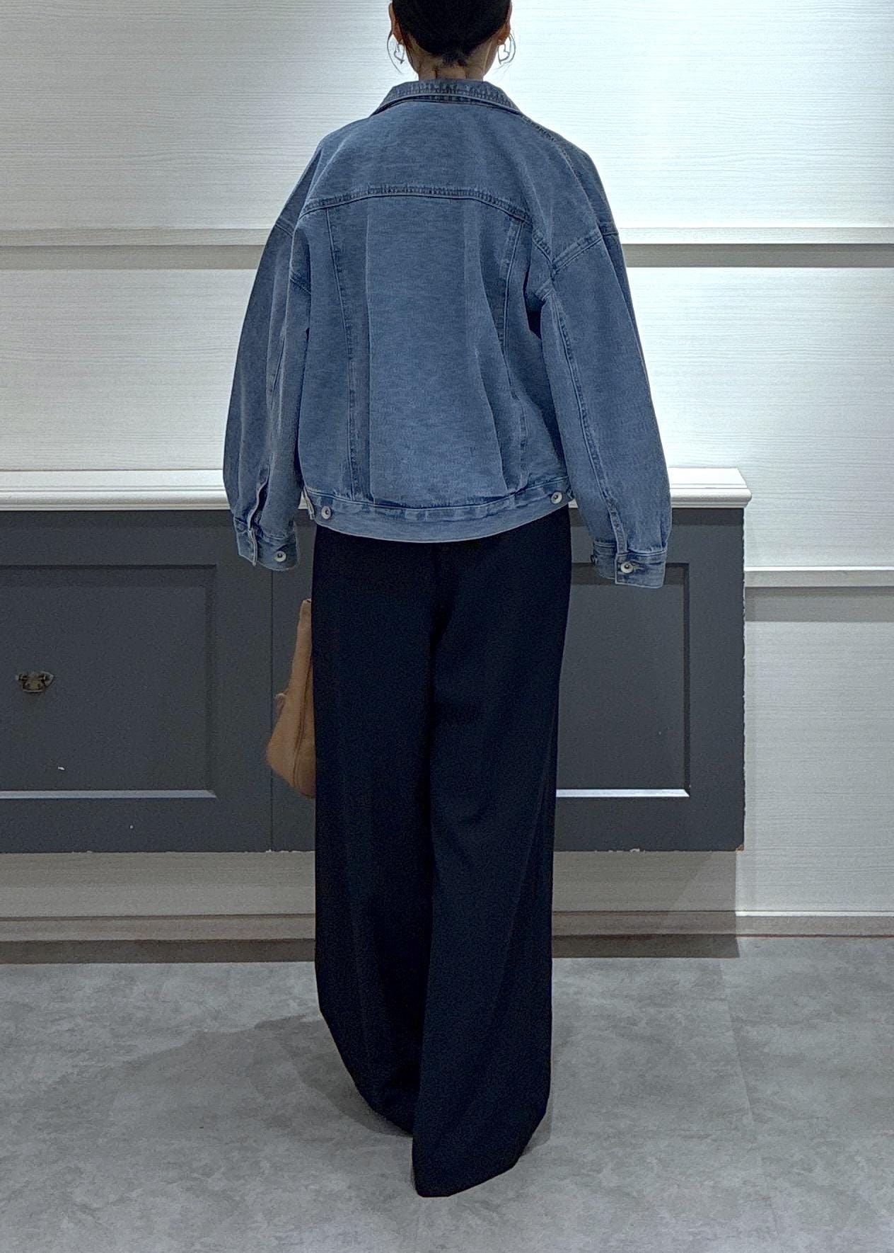 デニムジャケット×ワイドパンツ