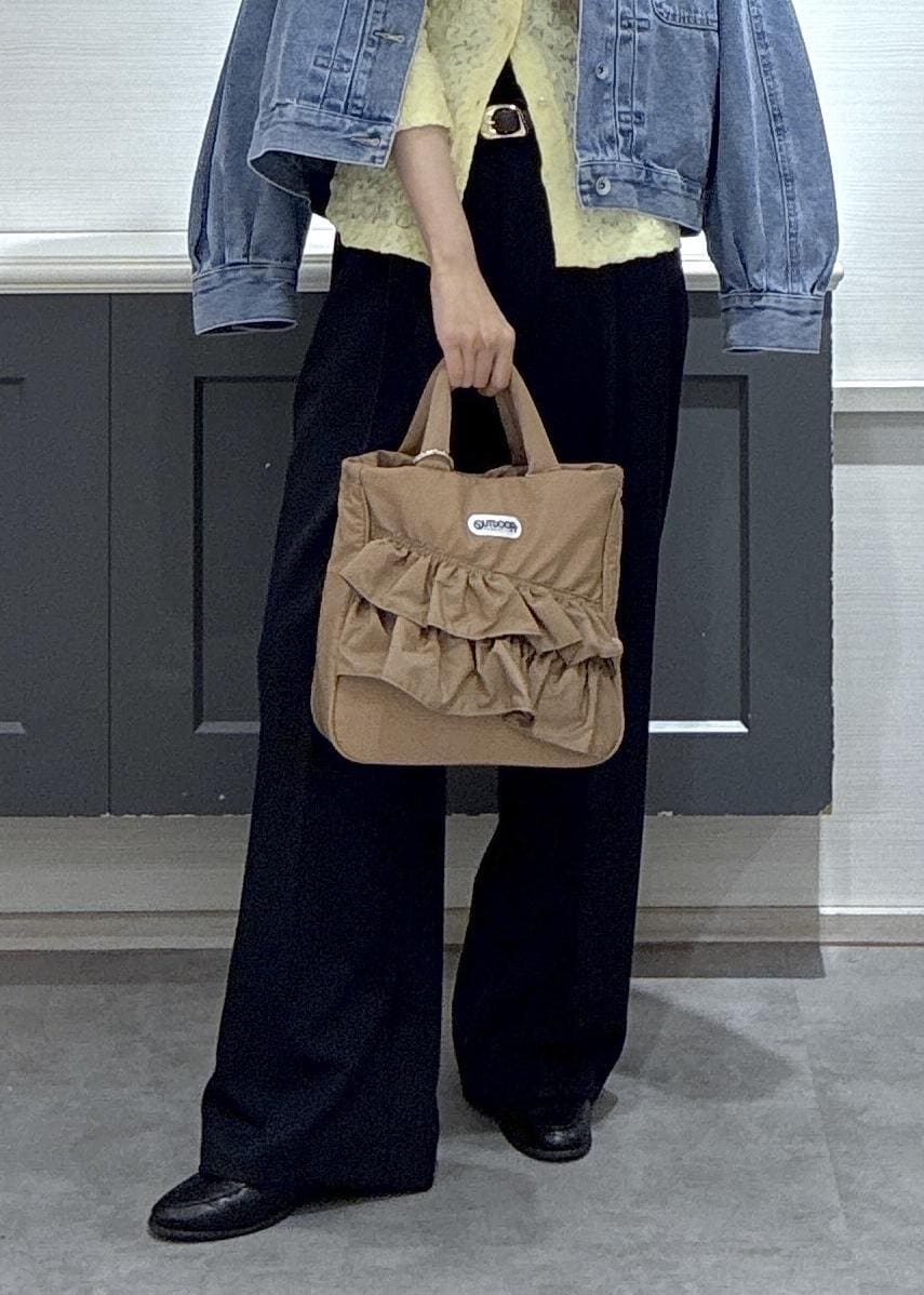 予約VIS【OUTDOOR PRODUCTS】VIS別注2WAYフリルトートバッグベージュ / F¥8,580レビュー見た目以上にしっかり入り、長財布やスマホはもちろんのことメイクポーチやペットボトルも入るので小旅行や1日のお出かけも安心して使用出来ます♡