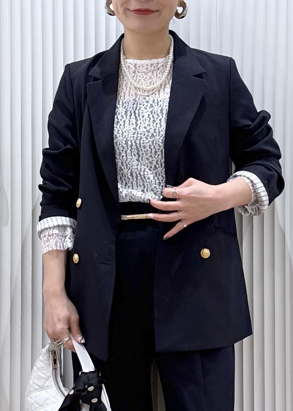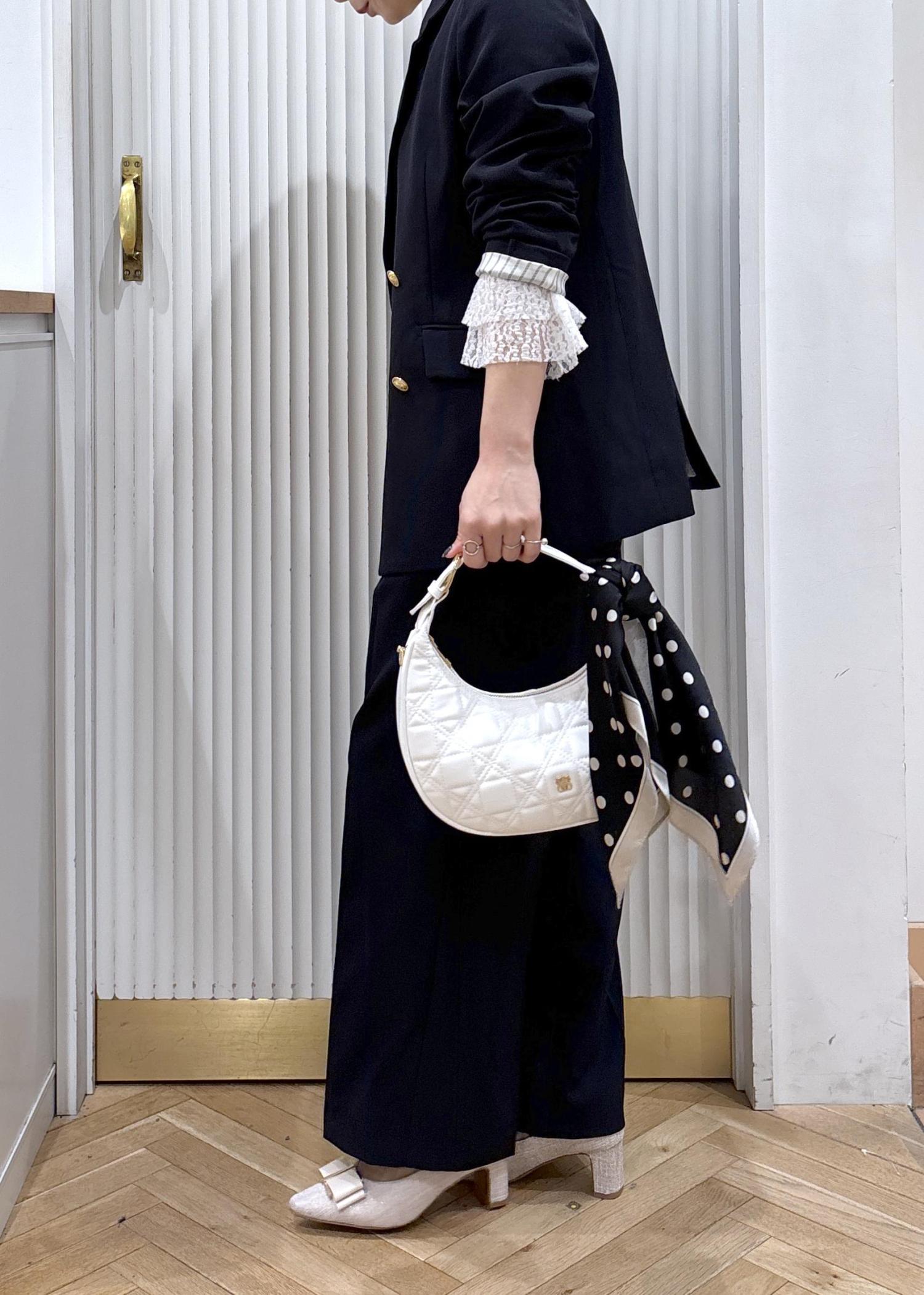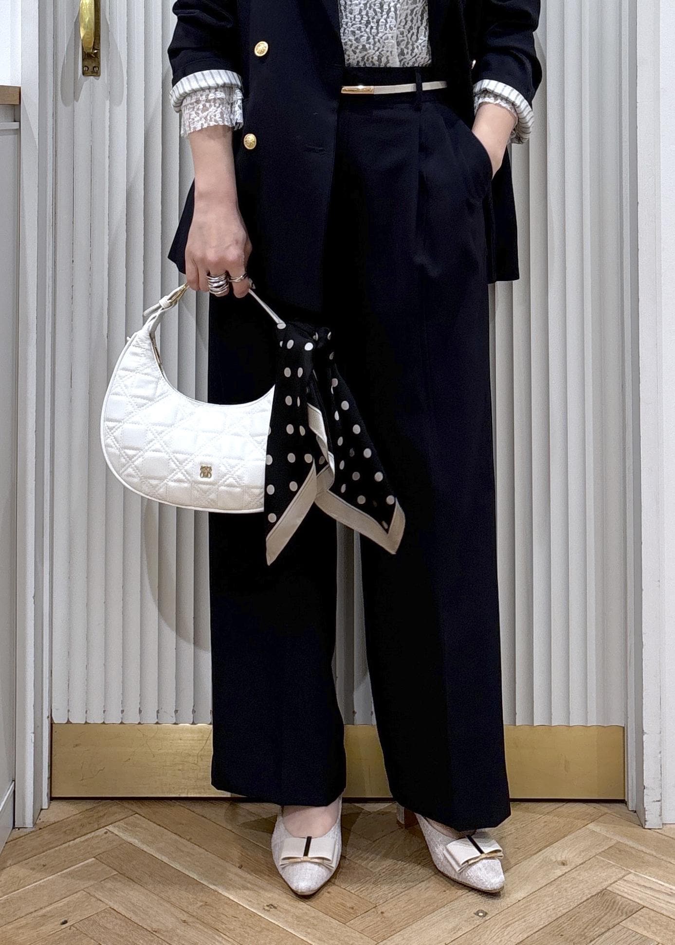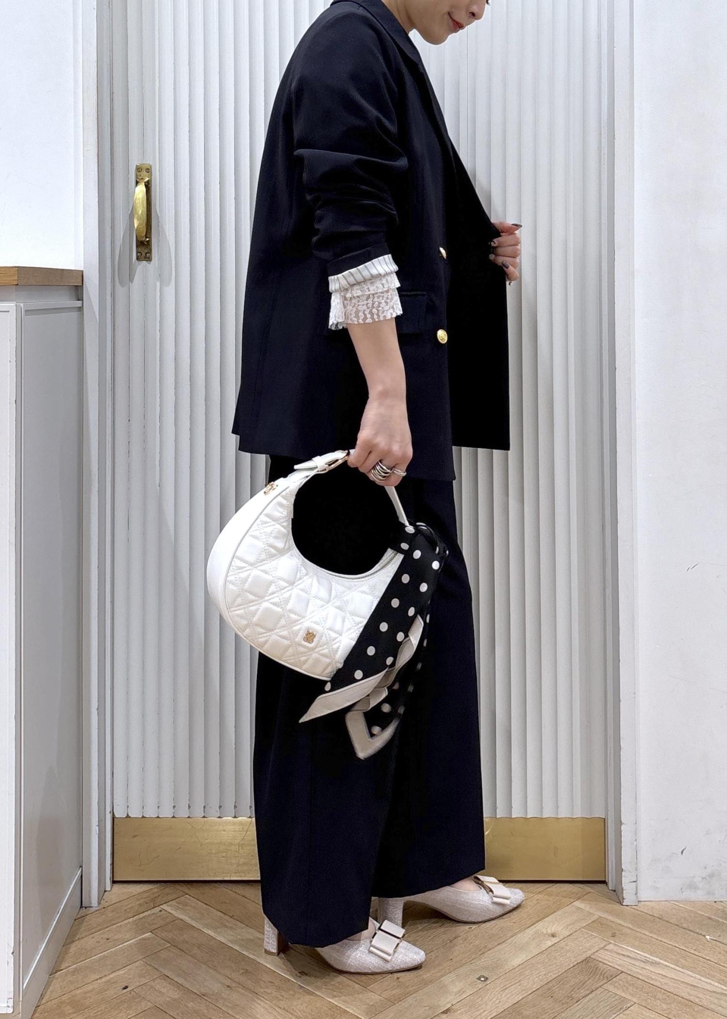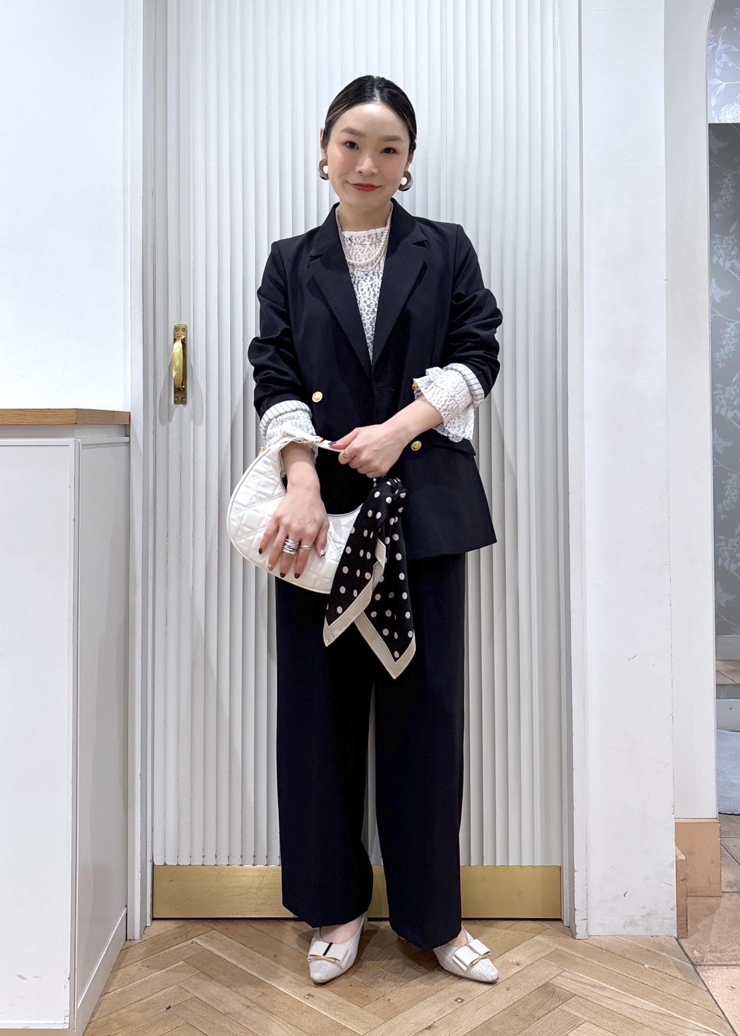 フォーマルな場面はもちろん、通勤にも使える多様性がありますし、セレモニーで控えめな場にも馴染むコーディネートにしてみました。