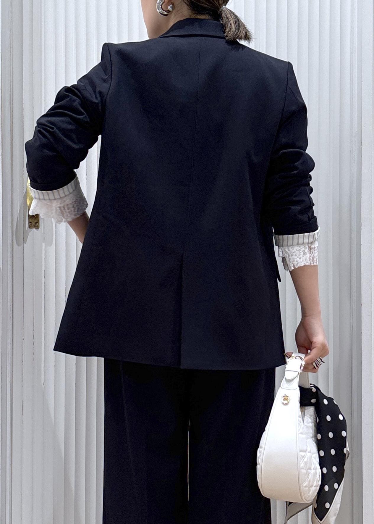 シワになりにくく、お家でお洗濯も可能。サラッとした柔らかな合縫生地なので、初春〜夏まで大活躍間違いなし。オンオフ使えて裏地付きのジャケットはSSの羽織に1着は欲しいアイテム。 -