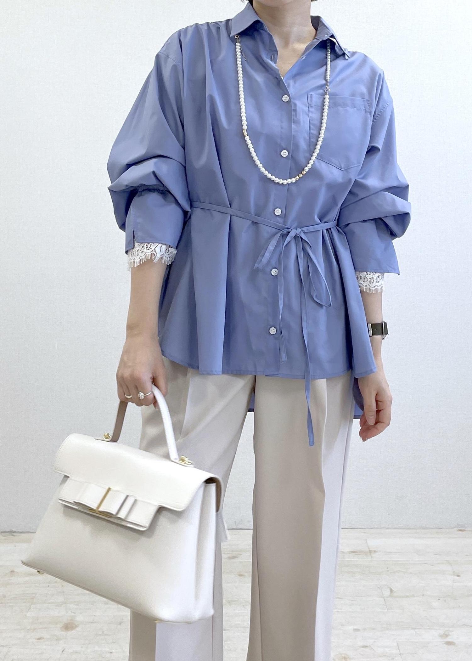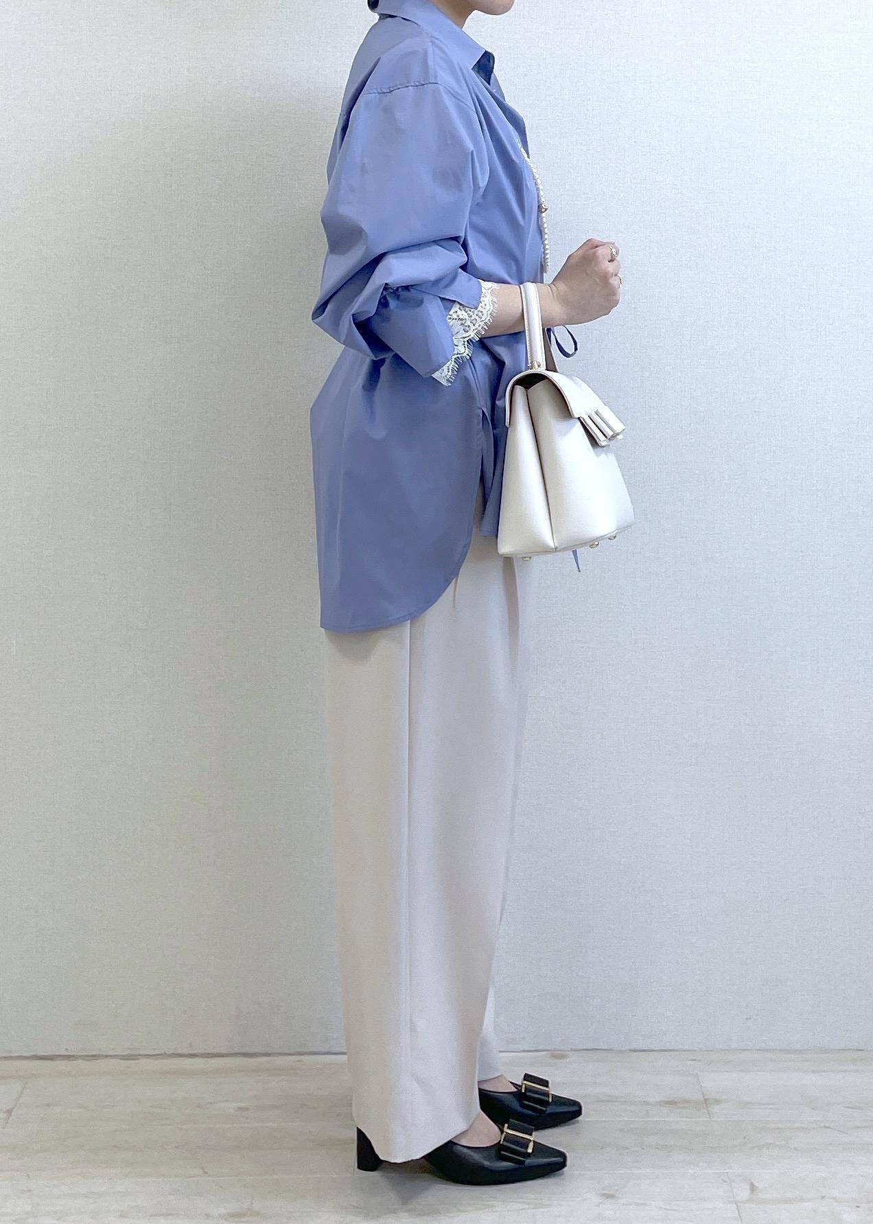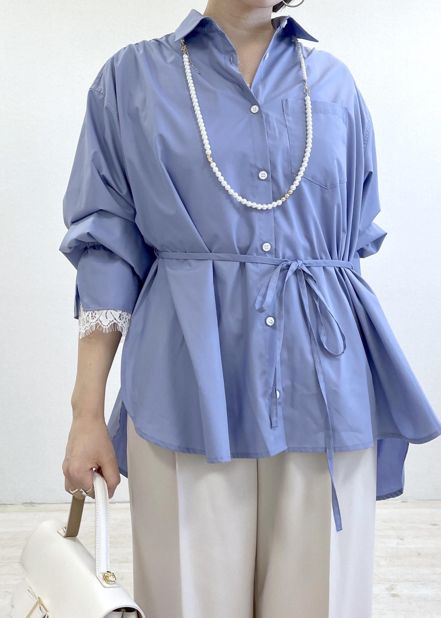 VISレーススリーブAラインシャツサックス / F¥5,929レビューオーバーサイズなサイズ感で、ゆるっと着られてかわいいです!