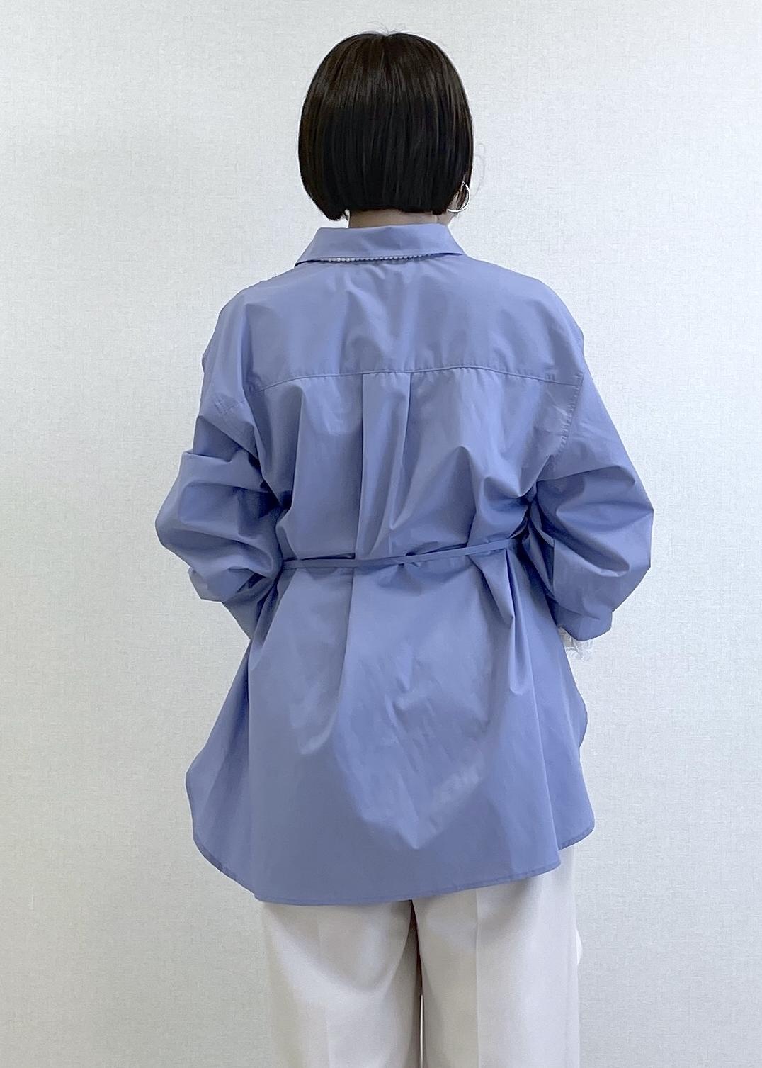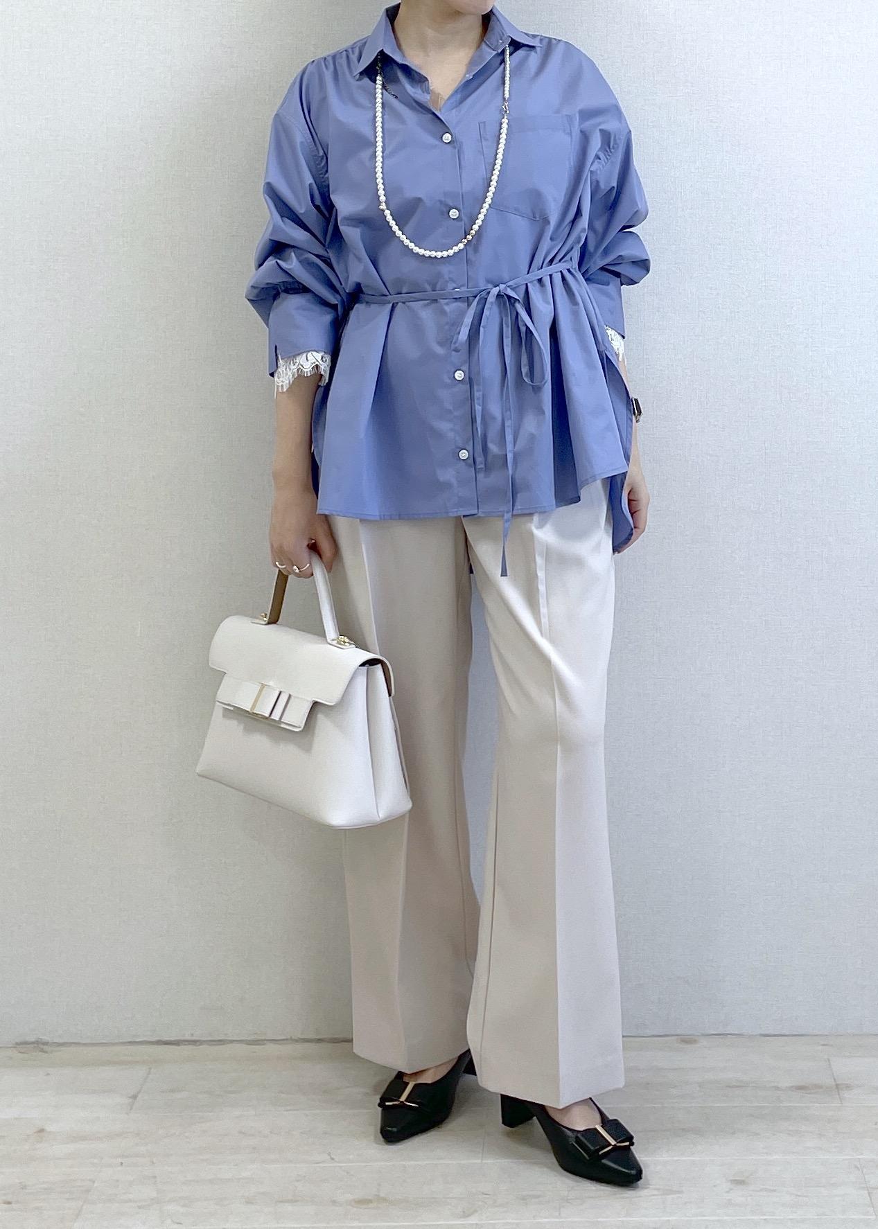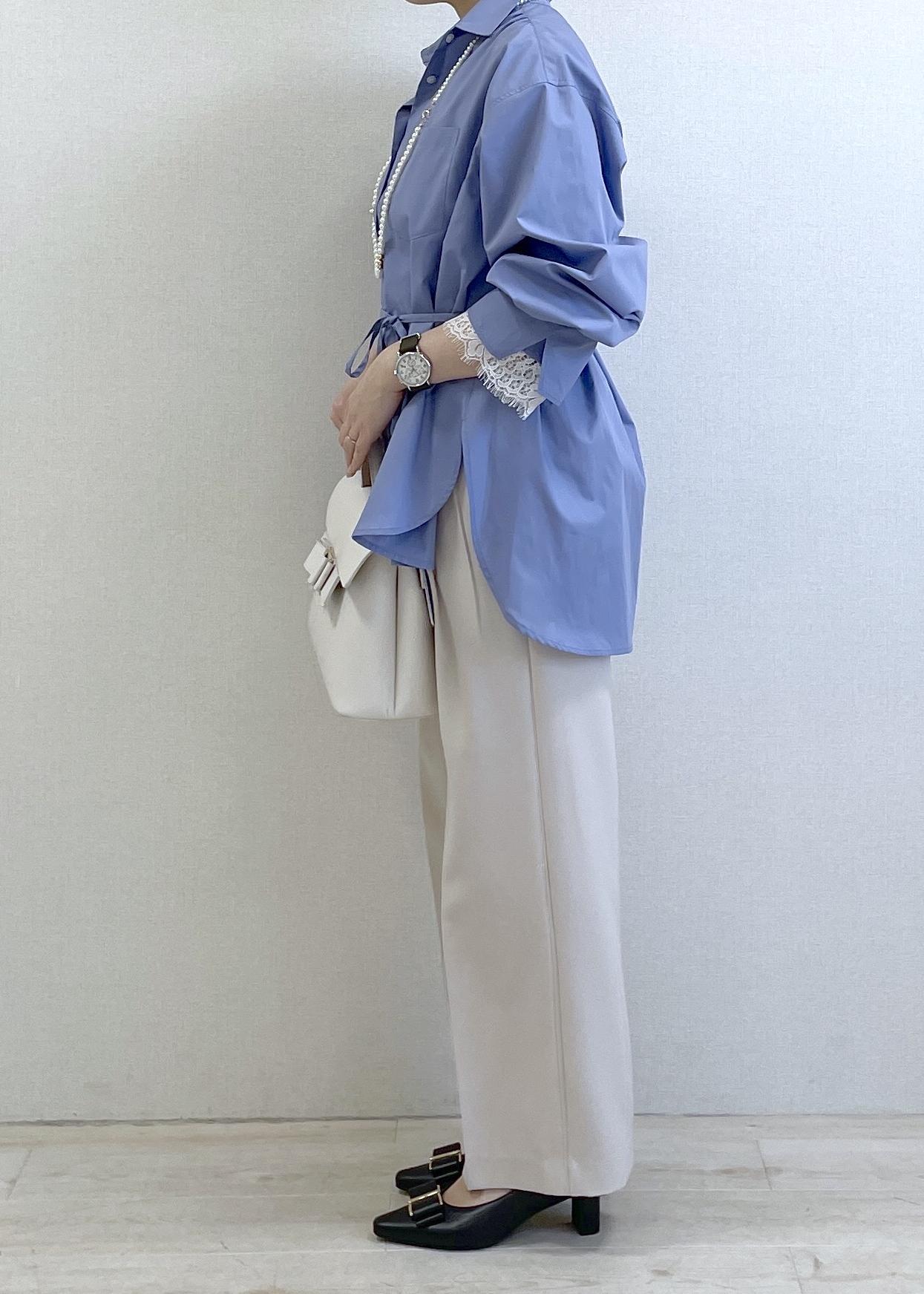 VISレーススリーブAラインシャツサックス / F¥5,929レビューオーバーサイズなサイズ感で、ゆるっと着られてかわいいです!