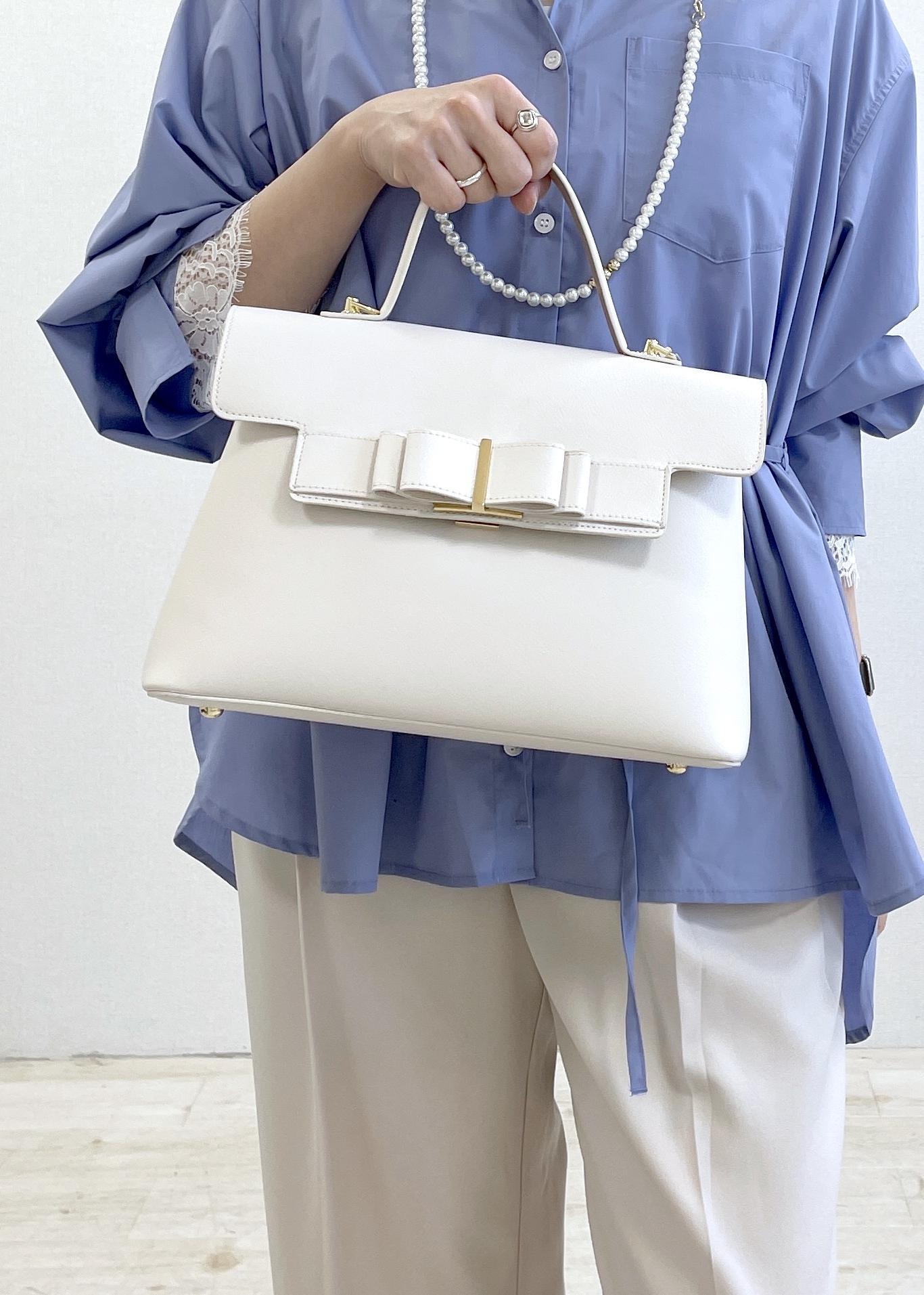 VISリボンベルトワンハンドルバッグ/軽量・2WAYオフホワイト / F¥6,919レビューリボンのデザインがとてもおしゃれで、生地も相まって、高見えします!