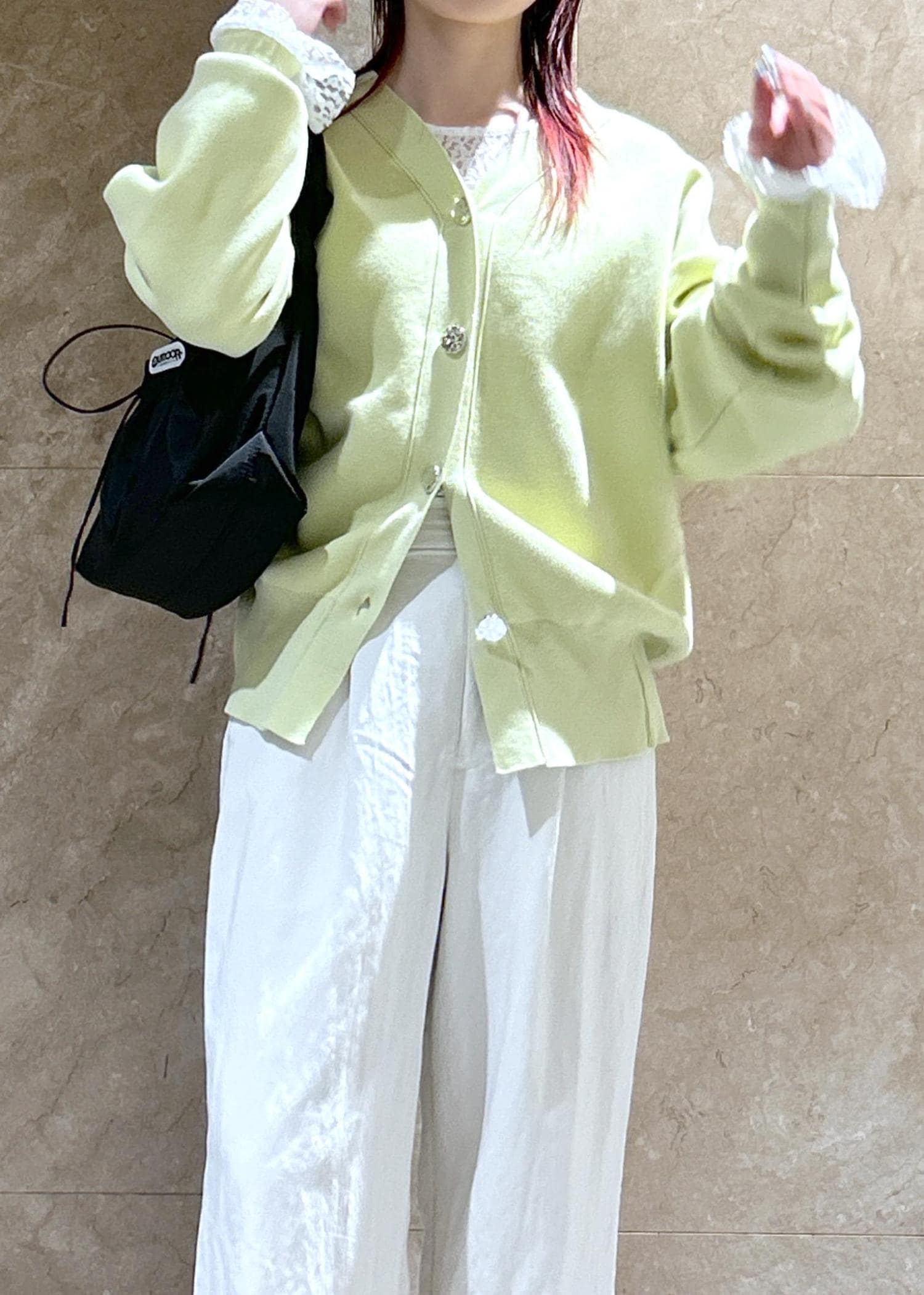VIS釦アクセントコクーンカーディガンライトグリーン / F¥6,589レビューシルエットがかわいいVネックカーディガン。
