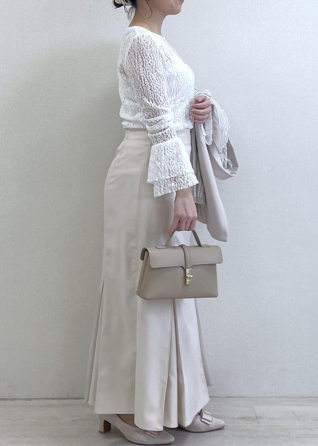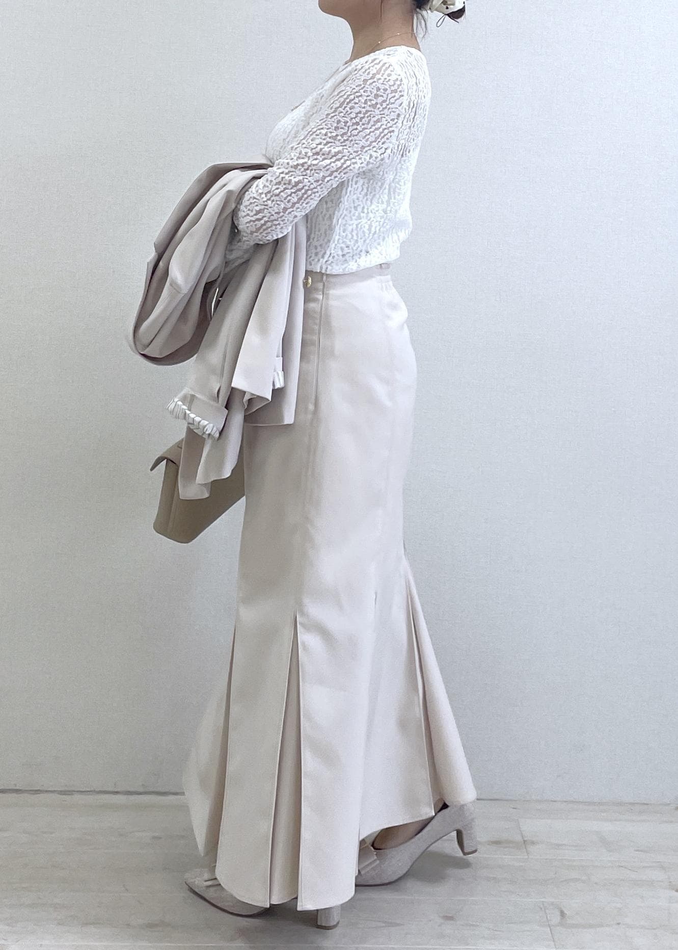 VISボックスプリーツマーメイドスカート/イージーケア・防シワベージュ / M¥6,589レビュー150cmでMサイズ着用です。